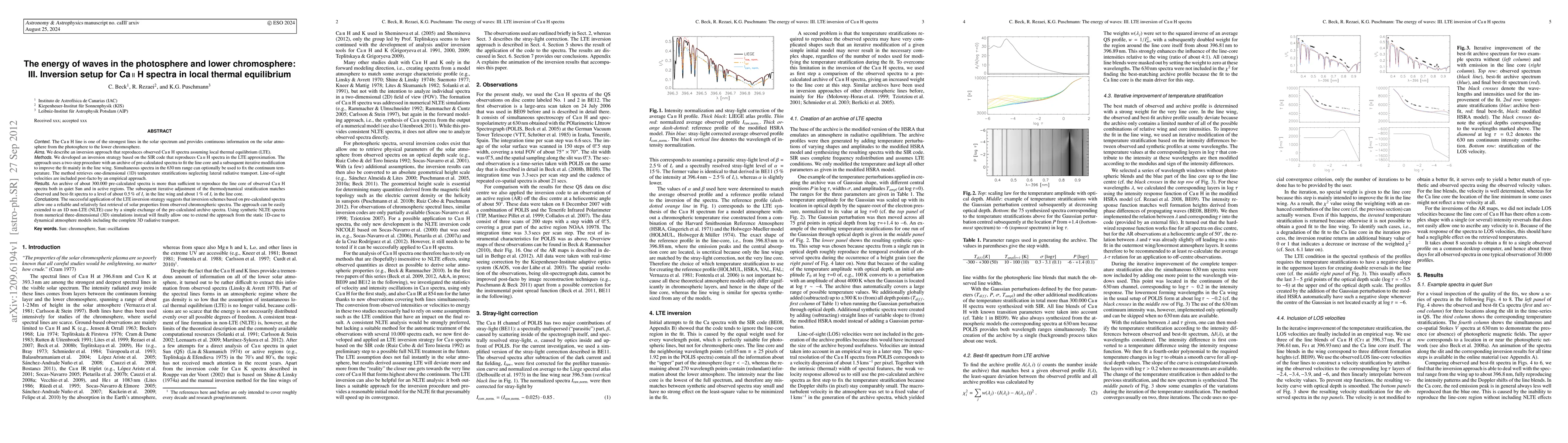 This paper presents an inversion method for Ca II H spectra, assuming Local Thermodynamic Equilibrium (LTE), using the SIR code. The approach involves a two-step fitting process with an archive of pre-calculated spectra for the line core and iterative adjustments for the line wing. The method retrieves 1D temperature stratifications, neglecting lateral radiative transport, and includes LOS velocities via an empirical approach. With an archive of 300,000 pre-calculated spectra, the method accurately reproduces observed Ca II H spectra in both quiet Sun and active regions, matching observed spectra to 0.5% (1%) in the line wing (core). The approach enables rapid and reliable retrieval of solar properties from chromospheric spectra, easily adaptable to a 1D Non-LTE case.