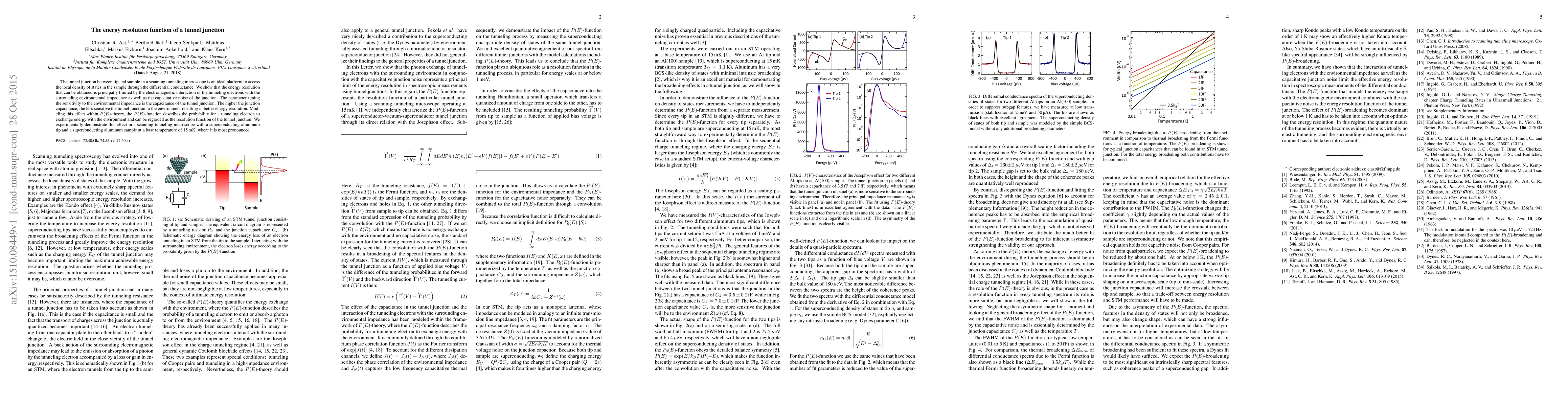 This paper investigates the energy resolution of a tunnel junction in a scanning tunneling microscope, demonstrating that it is primarily limited by environmental impedance and junction capacitance. Higher junction capacitance reduces sensitivity to the environment, thereby improving energy resolution, as modeled by P(E)-theory.