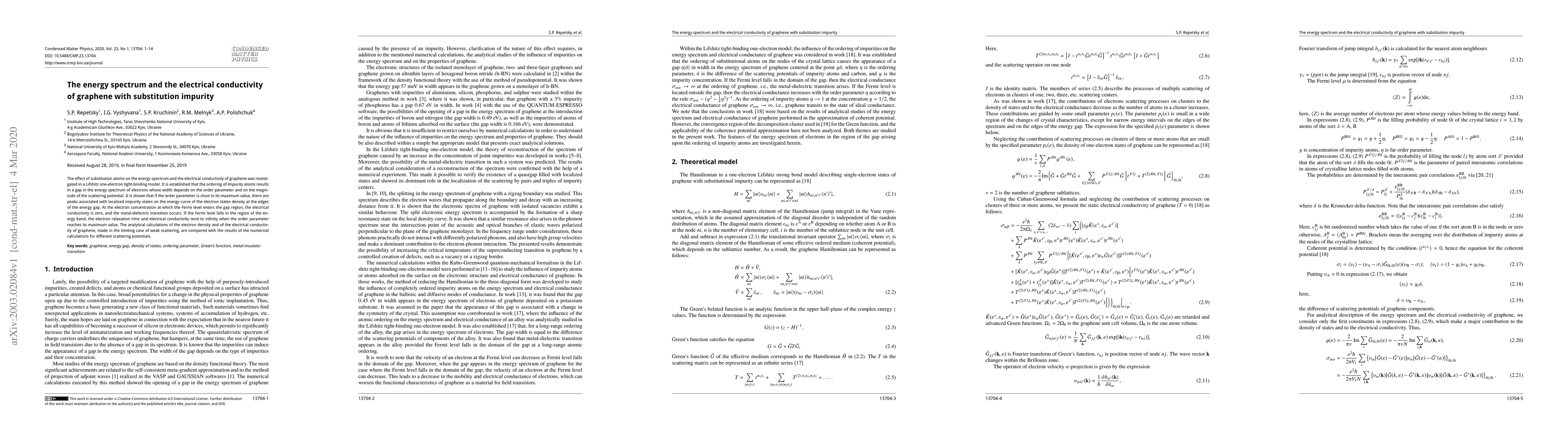 Substitution impurities in graphene create a gap in the energy spectrum, affecting conductivity, with gaps narrowing at high scattering potential. At maximum scattering potential, conductivity is zero or infinite depending on Fermi level position.