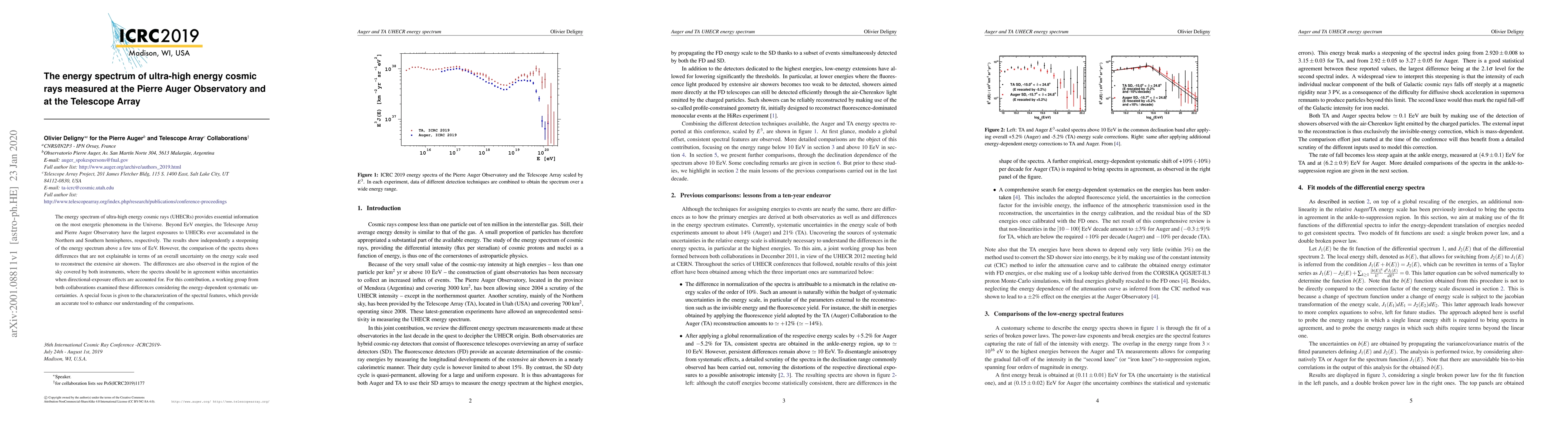 This paper reports the energy spectrum of ultra-high energy cosmic rays measured by the Pierre Auger Observatory and Telescope Array, showing a steepening above a few tens of EeV. Discrepancies between the spectra are noted, which cannot be fully explained by energy scale uncertainties.