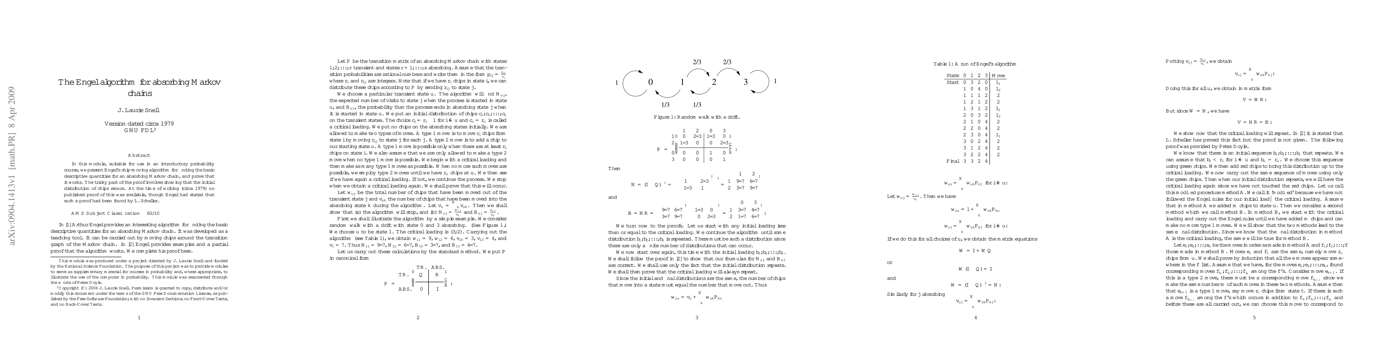 In this module, suitable for use in an introductory probability course, we present Engel's chip-moving algorithm for finding the basic descriptive quantities for an absorbing Markov chain, and prove that it works. The tricky part of the proof involves showing that the initial distribution of chips recurs. At the time of writing (circa 1979) no published proof of this was available, though Engel had stated that such a proof had been found by L. Scheller.