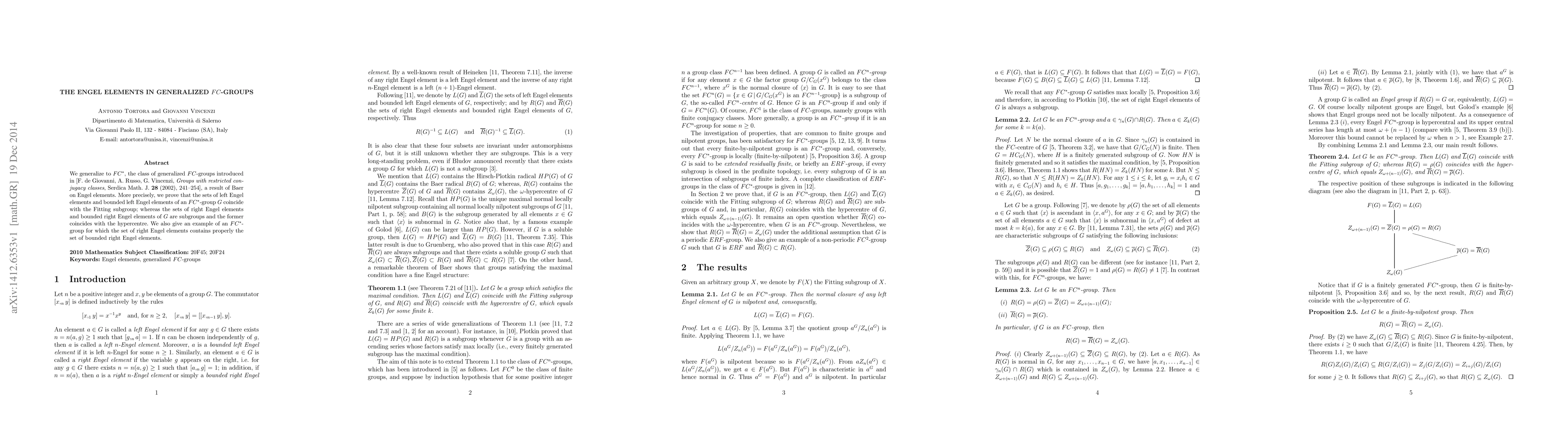 We generalize to FC*, the class of generalized FC-groups introduced in [F. de Giovanni, A. Russo, G. Vincenzi, Groups with restricted conjugacy classes, Serdica Math. J. 28 (2002), 241-254], a result of Baer on Engel elements. More precisely, we prove that the sets of left Engel elements and bounded left Engel elements of an FC*-group G coincide with the Fitting subgroup; whereas the sets of right Engel elements and bounded right Engel elements of G are subgroups and the former coincides with the hypercentre. We also give an example of an FC*-group for which the set of right Engel elements contains properly the set of bounded right Engel elements.
