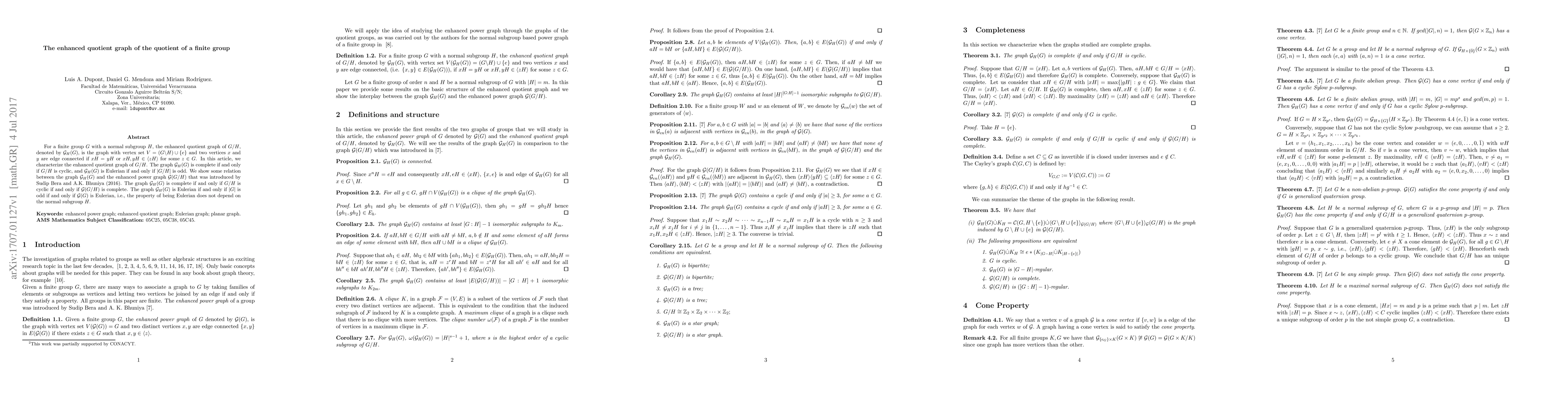For a finite group $G$ with a normal subgroup $H$, the enhanced quotient graph of $G/H$, denoted by $\mathcal{G}_{H}(G),$ is the graph with vertex set $V=(G\backslash H)\cup \{e\}$ and two vertices $x$ and $y$ are edge connected if $xH = yH$ or $xH,yH\in \langle zH\rangle$ for some $z\in G$. In this article, we characterize the enhanced quotient graph of $G/H$. The graph $\mathcal{G}_{H}(G)$ is complete if and only if $G/H$ is cyclic, and $\mathcal{G}_{H}(G)$ is Eulerian if and only if $|G/H|$ is odd. We show some relation between the graph $\mathcal{G}_{H}(G)$ and the enhanced power graph $\mathcal{G}(G/H)$ that was introduced by Sudip Bera and A.K. Bhuniya (2016). The graph $\mathcal{G}_H(G)$ is complete if and only if $G/H$ is cyclic if and only if $\mathcal{G}(G/H)$ is complete. The graph $\mathcal{G}_H(G)$ is Eulerian if and only if $|G|$ is odd if and only if $\mathcal{G}(G)$ is Eulerian, i.e., the property of being Eulerian does not depend on the normal subgroup $H$.