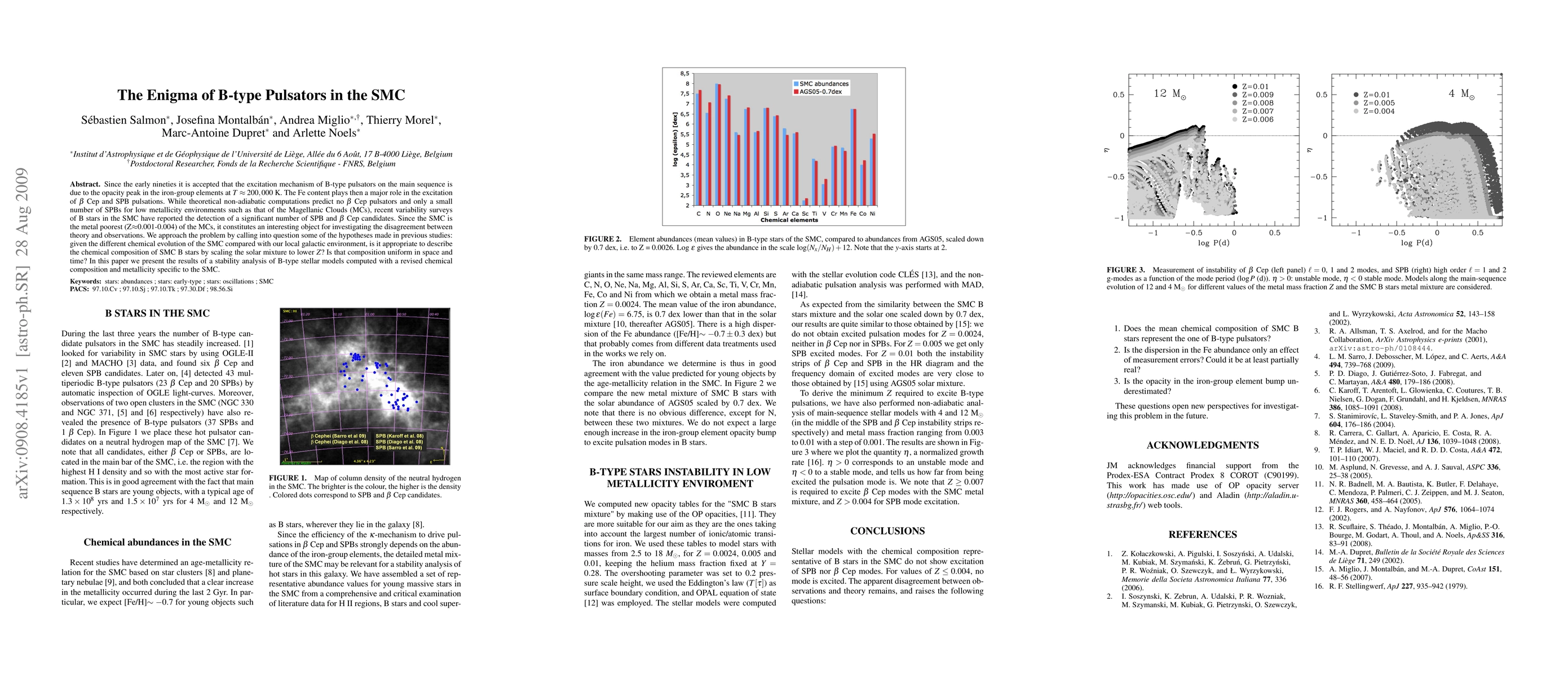 Since the early nineties it is accepted that the excitation mechanism of B-type pulsators on the main sequence is due to the opacity peak in the iron-group elements at $T\approx 200,000$ K. The Fe content plays then a major role in the excitation of $\beta$ Cep and SPB pulsations. While theoretical non-adiabatic computations predict no $\beta$ Cep pulsators and only a small number of SPBs for low metallicity environments such as that of the Magellanic Clouds (MCs), recent variability surveys of B stars in the SMC have reported the detection of a significant number of SPB and $\beta$ Cep candidates. Since the SMC is the metal poorest (Z$\approx$0.001-0.004) of the MCs, it constitutes an interesting object for investigating the disagreement between theory and observations. We approach the problem by calling into question some of the hypotheses made in previous studies: given the different chemical evolution of the SMC compared with our local galactic environment, is it appropriate to describe the chemical composition of SMC B stars by scaling the solar mixture to lower $Z$? Is that composition uniform in space and time? In this paper we present the results of a stability analysis of B-type stellar models computed with a revised chemical composition and metallicity specific to the SMC.