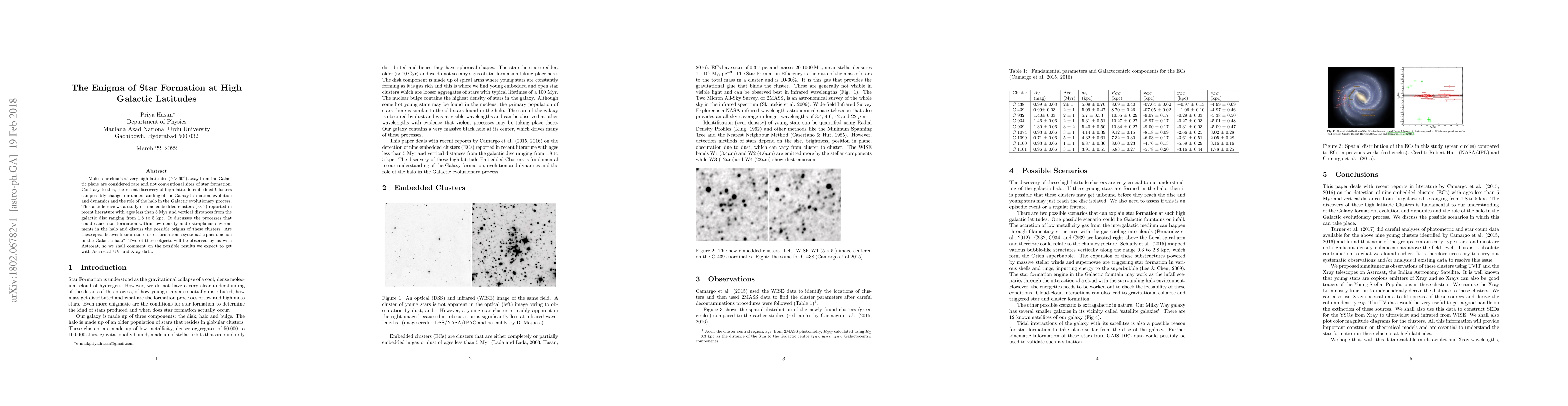 The paper presents a comprehensive review of recent reports on embedded clusters at high galactic latitudes, proposing possible scenarios for their formation, and suggesting future observations using Astrosat.