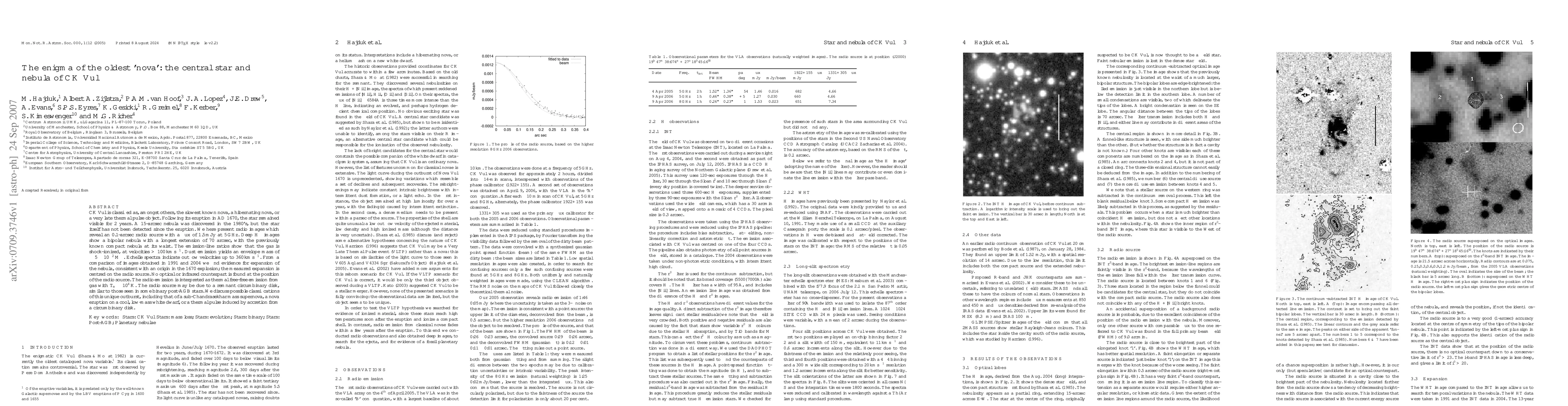 The oldest known nova, CK Vul, has been studied using radio and deep Halpha images, revealing a bipolar nebula with expansion consistent with the 1670 eruption, and a possible circumbinary disk remnant, raising questions about its classification as a sub-Chandrasekhar mass supernova or thermal pulse.