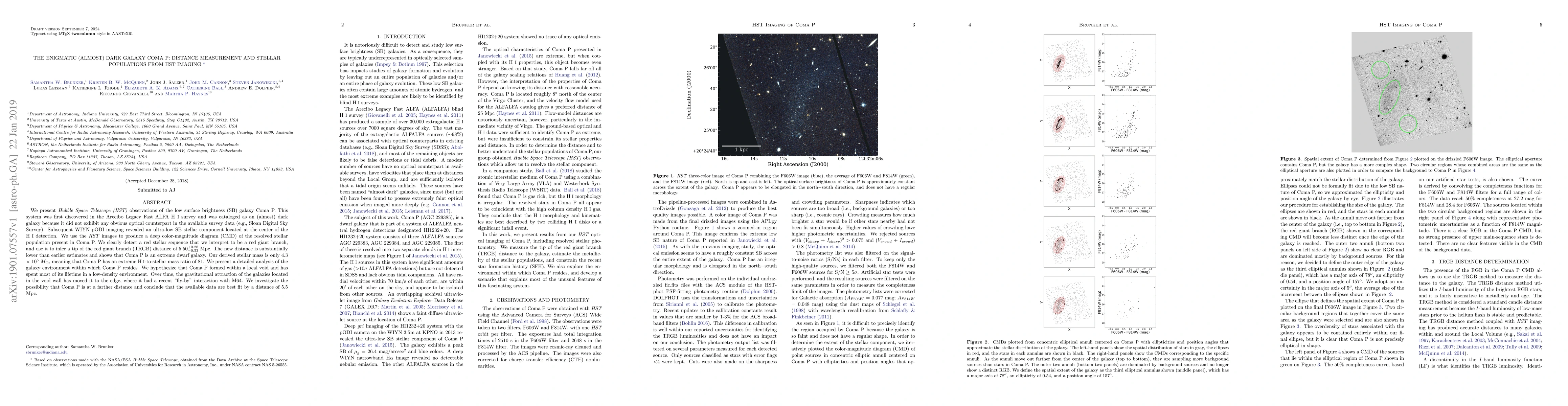 The Hubble Space Telescope observations of the galaxy Coma P, initially deemed an 'almost dark' galaxy, reveal a low surface brightness stellar component. Using HST images, a deep color-magnitude diagram was constructed, identifying a red giant branch and inferring a distance of 5.50±0.53 Mpc. This distance places Coma P as an extreme dwarf galaxy with an exceptionally high HI-to-stellar mass ratio, suggesting it formed in a void and experienced a recent interaction with M64.