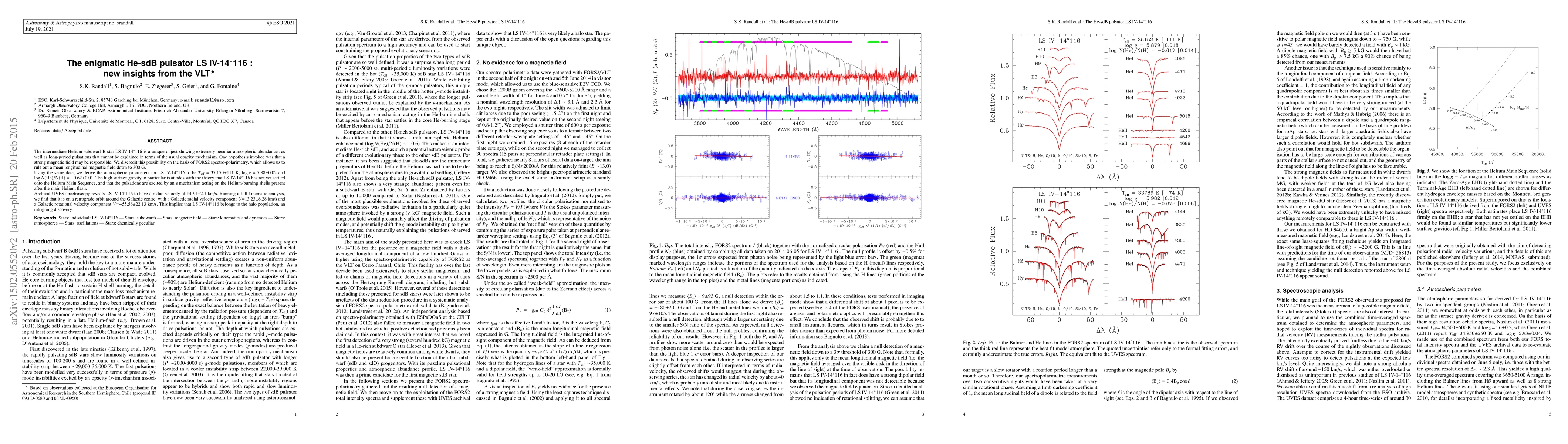 The star LS IV$-$14$^ circ$116 is found to have a high surface gravity that contradicts its not-yet-settled-on-Helium-Main-Sequence theory, suggesting an alternative explanation for its pulsations. The star orbits the Galactic centre in a retrograde orbit, belonging to the halo population.