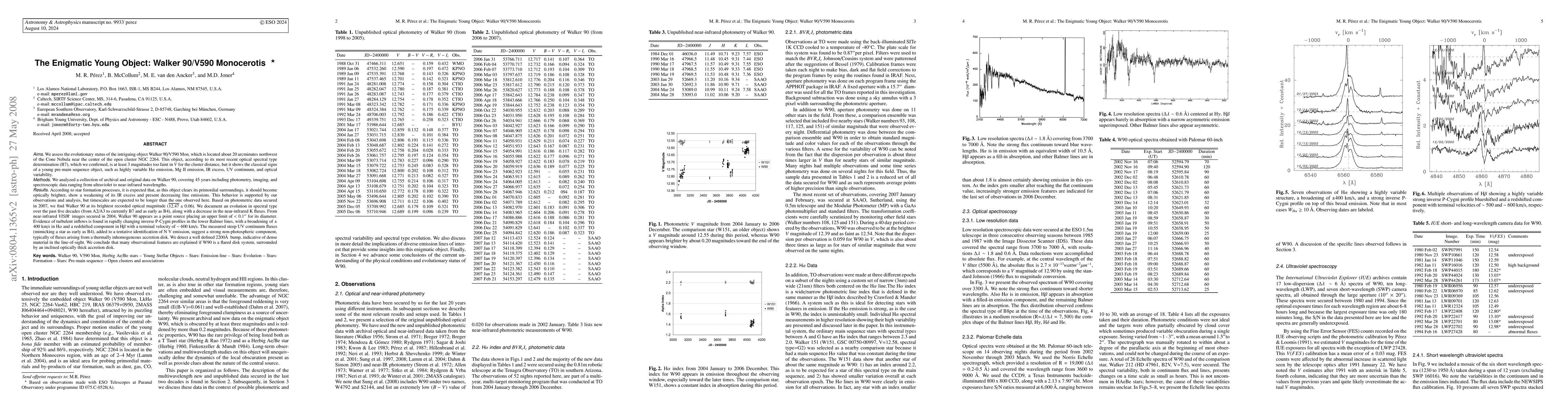 We assess the evolutionary status of the intriguing object Walker 90/V590 Mon, which is located about 20 arcminutes northwest of the Cone Nebula near the center of the open cluster NGC 2264. This object, according to its most recent optical spectral type determination (B7), which we confirmed, is at least 3 magnitudes too faint in V for the cluster distance, but it shows the classical signs of a young pre-main sequence object, such as highly variable Halpha emission, Mg II emission, IR excess, UV continuum, and optical variability. We analyzed a collection of archival and original data on Walker 90, covering 45 years including photometry, imaging, and spectroscopic data ranging from ultraviolet to near-infrared wavelengths. According to star formation processes, it is expected that, as this object clears its primordial surroundings, it should become optically brighter, show a weakening of its IR excess and present decreasing line emissions. This behavior is supported by our observations and analysis, but timescales are expected to be longer than the one observed here. Based on photometric data secured in 2007, we find Walker 90 at its brightest recorded optical magnitude. We document an evolution in spectral type over the past five decades (from A2/A3 to currently B7 and as early as B4), along with a decrease in the near-infrared K fluxes. From near-infrared images secured in 2004, Walker 90 appears as a point source placing an upper limit of 0.1 arcsec for its diameter. We conclude that many observational features are explained if W90 is a flared disk system, surrounded by an inclined optically thick accretion disk.