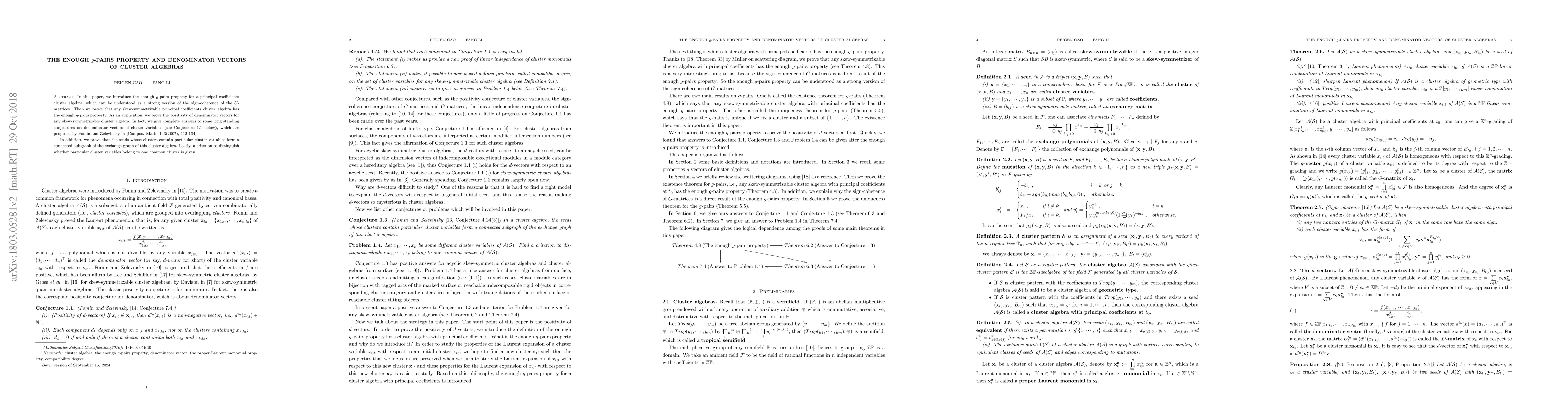 This paper introduces the enough $g$-pairs property for principal coefficients cluster algebras, proving its existence in skew-symmetrizable algebras and establishing the positivity of denominator vectors. It also resolves longstanding conjectures on cluster variable denominators and provides a criterion for identifying common clusters among particular variables.