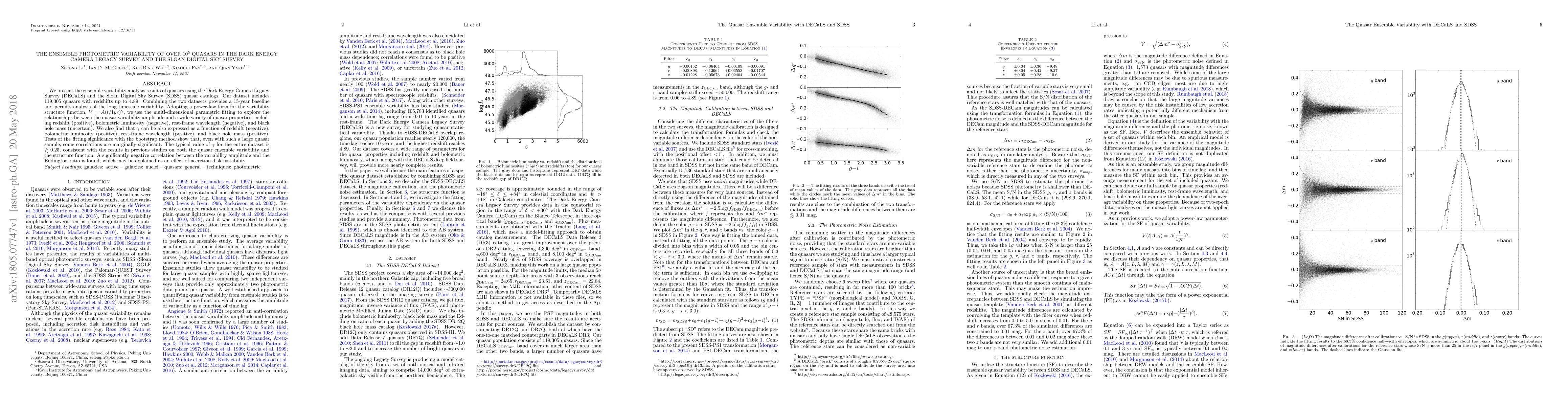 We present the ensemble variability analysis results of quasars using the Dark Energy Camera Legacy Survey (DECaLS) and the Sloan Digital Sky Survey (SDSS) quasar catalogs. Our dataset includes 119,305 quasars with redshifts up to 4.89. Combining the two datasets provides a 15-year baseline and permits analysis of the long timescale variability. Adopting a power-law form for the variability structure function, $V=A(t/1yr)^{\gamma}$, we use the multi-dimensional parametric fitting to explore the relationships between the quasar variability amplitude and a wide variety of quasar properties, including redshift (positive), bolometric luminosity (negative), rest-frame wavelength (negative), and black hole mass (uncertain). We also find that $\gamma$ can be also expressed as a function of redshift (negative), bolometric luminosity (positive), rest-frame wavelength (positive), and black hole mass (positive). Tests of the fitting significance with the bootstrap method show that, even with such a large quasar sample, some correlations are marginally significant. The typical value of $\gamma$ for the entire dataset is $\gtrsim 0.25$, consistent with the results in previous studies on both the quasar ensemble variability and the structure function. A significantly negative correlation between the variability amplitude and the Eddington ratio is found, which may be explained as an effect of accretion disk instability.