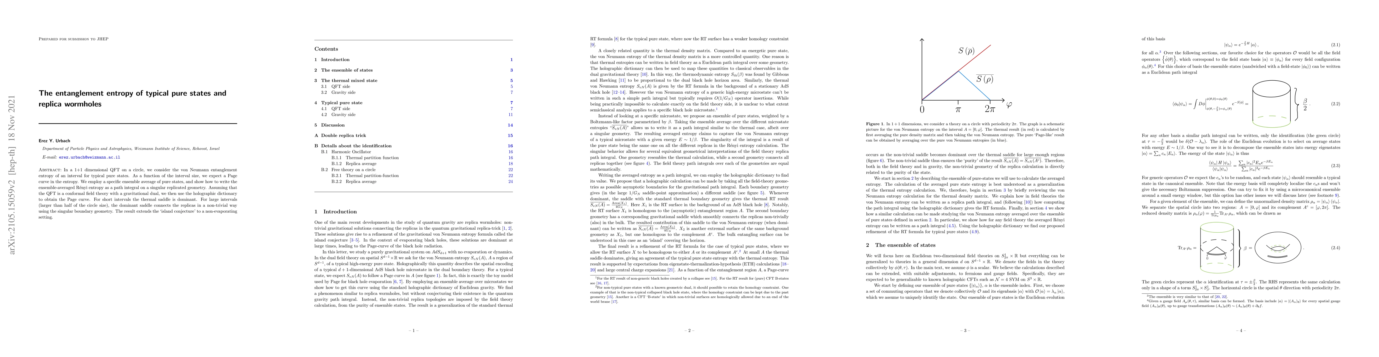 This paper investigates the entanglement entropy of typical pure states in a 1+1 dimensional QFT on a circle, revealing a Page curve behavior. It employs a replica wormhole geometry to explain the transition from thermal to non-trivial saddle dominance, extending the island conjecture in a non-evaporating framework.