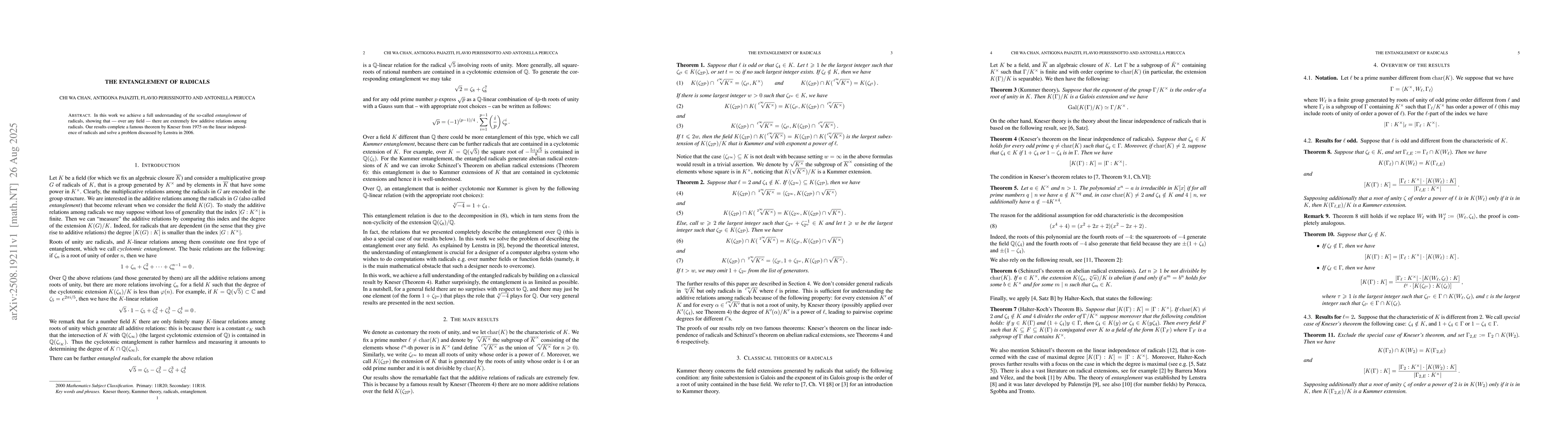In this work we achieve a full understanding of the so-called entanglement of radicals, showing that over any field there are extremely few additive relations among radicals. Our results complete a famous theorem by Kneser from 1975 on the linear independence of radicals and solve a problem discussed by Lenstra in 2006.