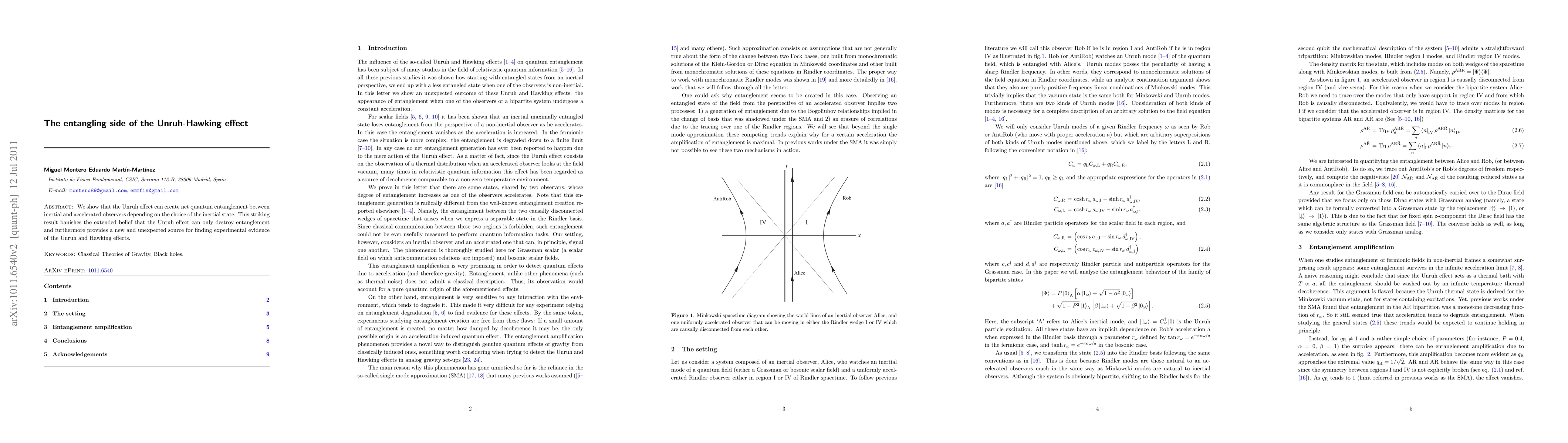 This paper demonstrates that the Unruh effect can generate net quantum entanglement between inertial and accelerated observers, challenging the prevailing notion that it only destroys entanglement. This discovery offers a novel pathway for experimental verification of both the Unruh and Hawking effects.