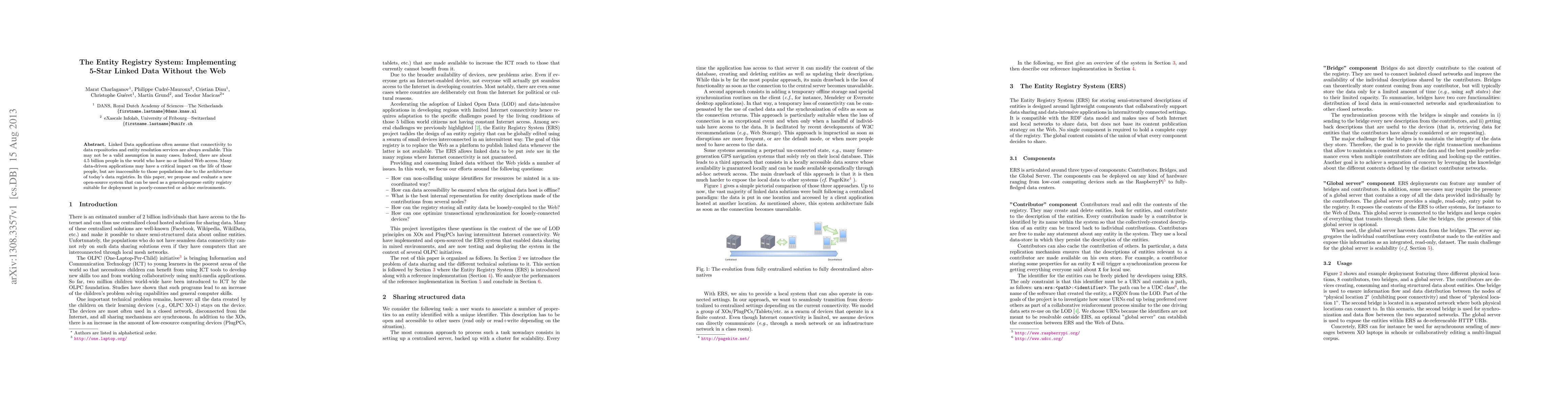Linked Data applications often assume that connectivity to data repositories and entity resolution services are always available. This may not be a valid assumption in many cases. Indeed, there are about 4.5 billion people in the world who have no or limited Web access. Many data-driven applications may have a critical impact on the life of those people, but are inaccessible to those populations due to the architecture of today's data registries. In this paper, we propose and evaluate a new open-source system that can be used as a general-purpose entity registry suitable for deployment in poorly-connected or ad-hoc environments.