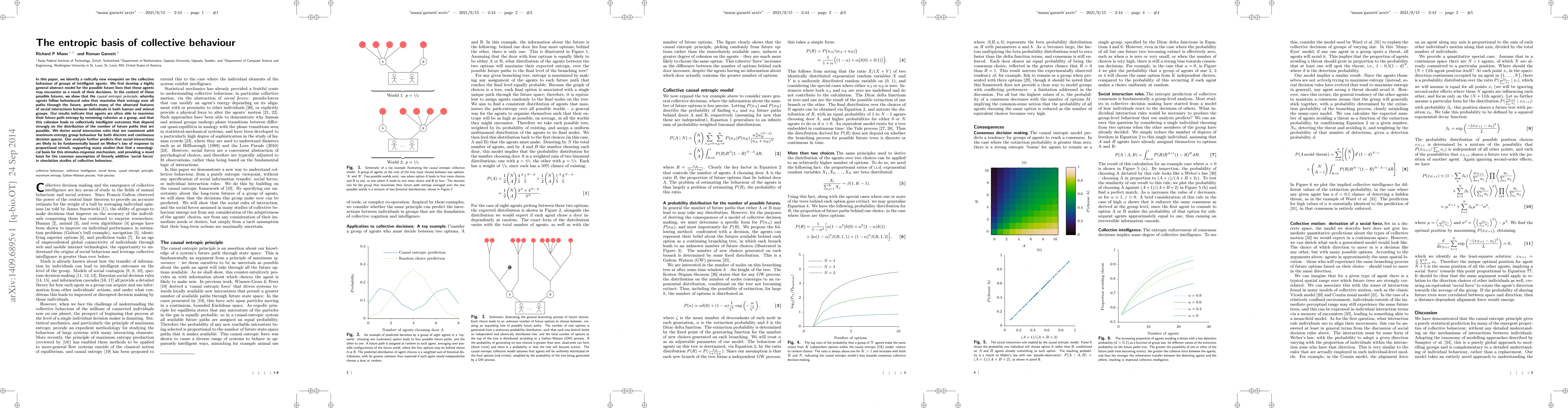 Researchers developed a new model to explain collective behavior in groups of intelligent agents, suggesting that maximizing future entropy leads to cohesive group decision-making. This approach predicts social interactions are based on Weber's law and provides a novel basis for understanding collective behavior.
