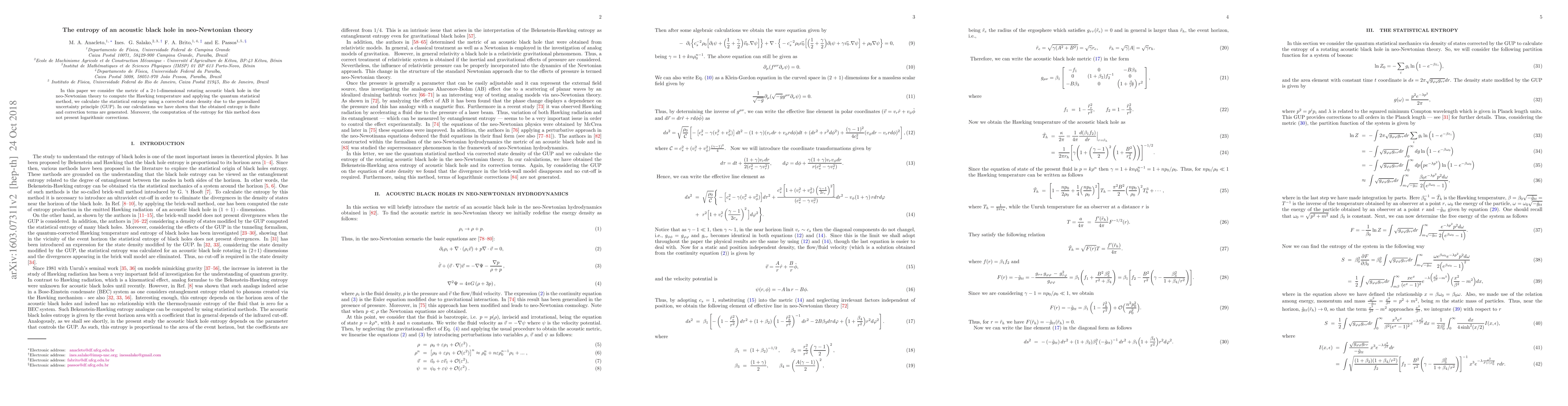 This paper investigates the entropy of a 2+1-dimensional rotating acoustic black hole within neo-Newtonian theory, calculating the Hawking temperature and statistical entropy using a corrected state density influenced by the generalized uncertainty principle. The study finds a finite entropy with generated correction terms, without logarithmic corrections.