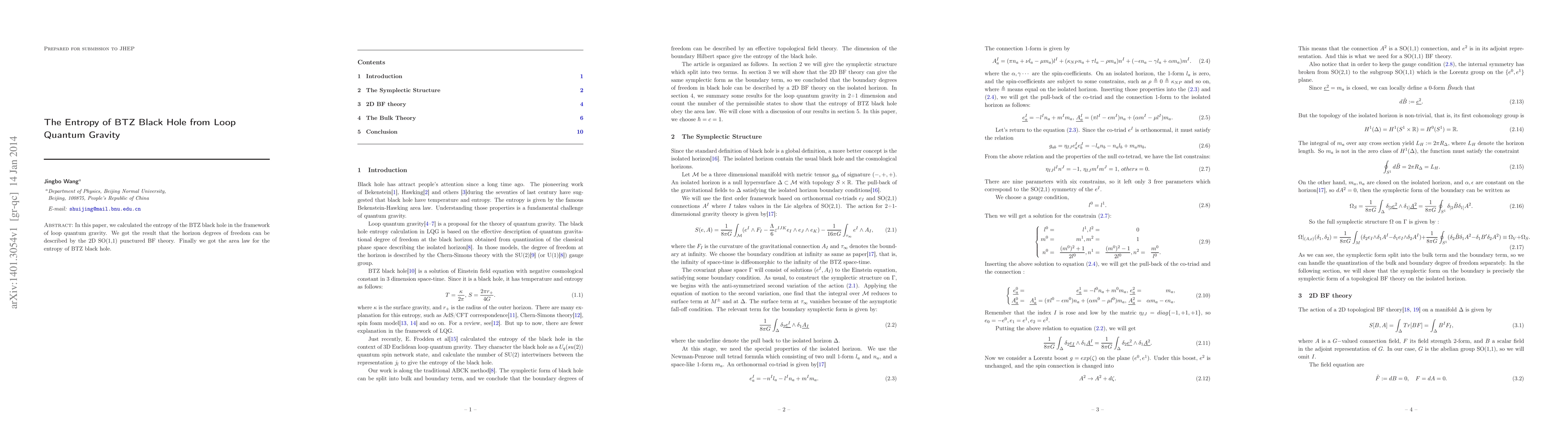 Summary: This study calculates the entropy of BTZ black holes using loop quantum gravity, revealing that horizon degrees of freedom correspond to a 2D SO(1,1) punctured BF theory, confirming an area law for BTZ black hole entropy.