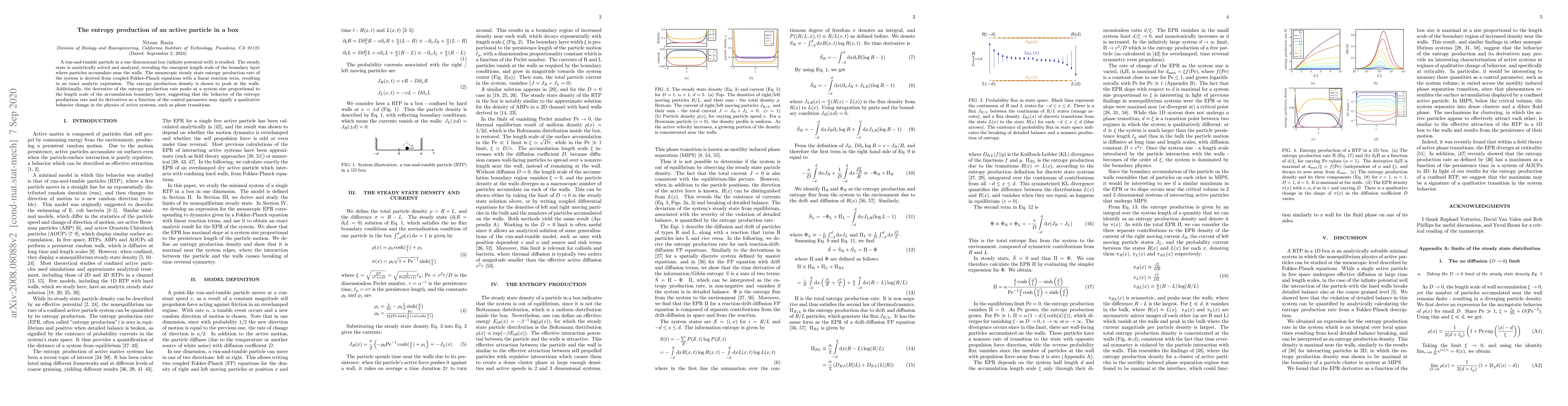 Researchers studied a particle in a box, finding that entropy production peaks at the walls and is proportional to the system size of an accumulation boundary layer.