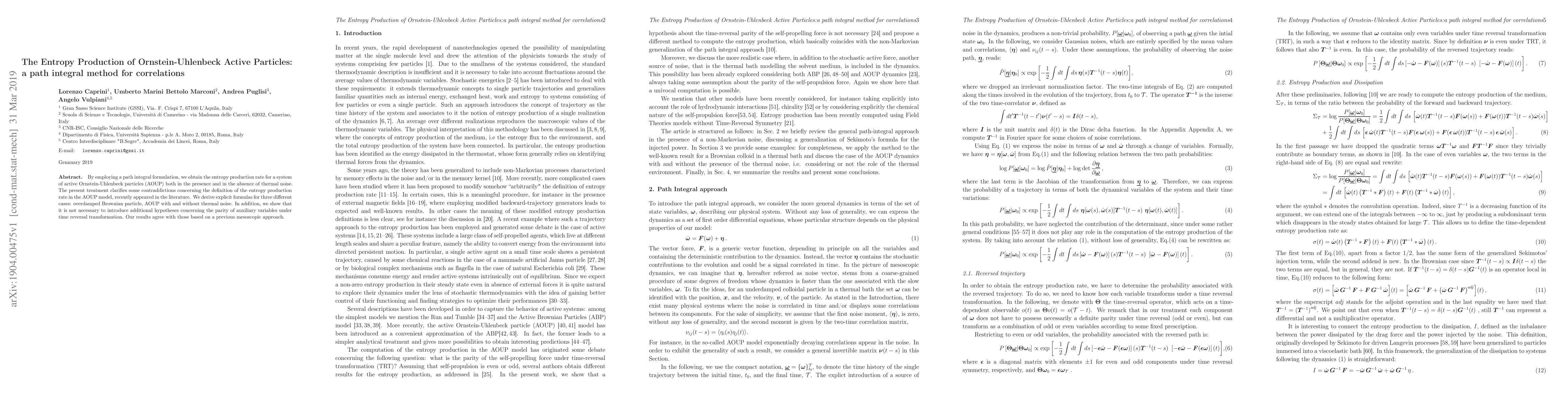 This paper uses a path integral method to determine the entropy production rate for active Ornstein-Uhlenbeck particles (AOUP) in various conditions, resolving recent contradictions in the literature. It provides explicit formulas for overdamped Brownian particles and AOUP with and without thermal noise, without requiring additional hypotheses.