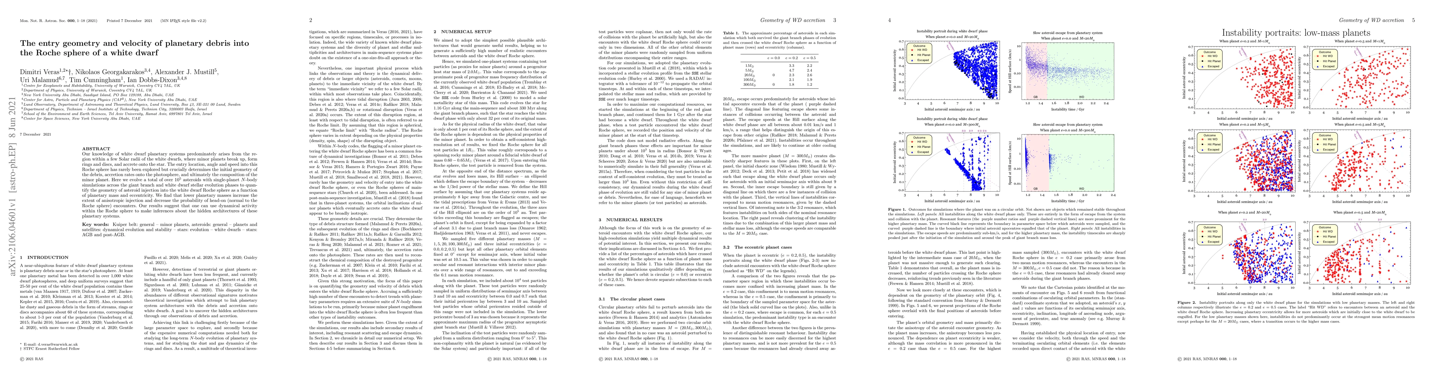 The research utilized N-body simulations to investigate the entry geometry and velocity of planetary debris into the Roche sphere of a white dwarf, considering factors such as planetary mass and eccentricity across the giant branch and white dwarf stellar evolution phases.