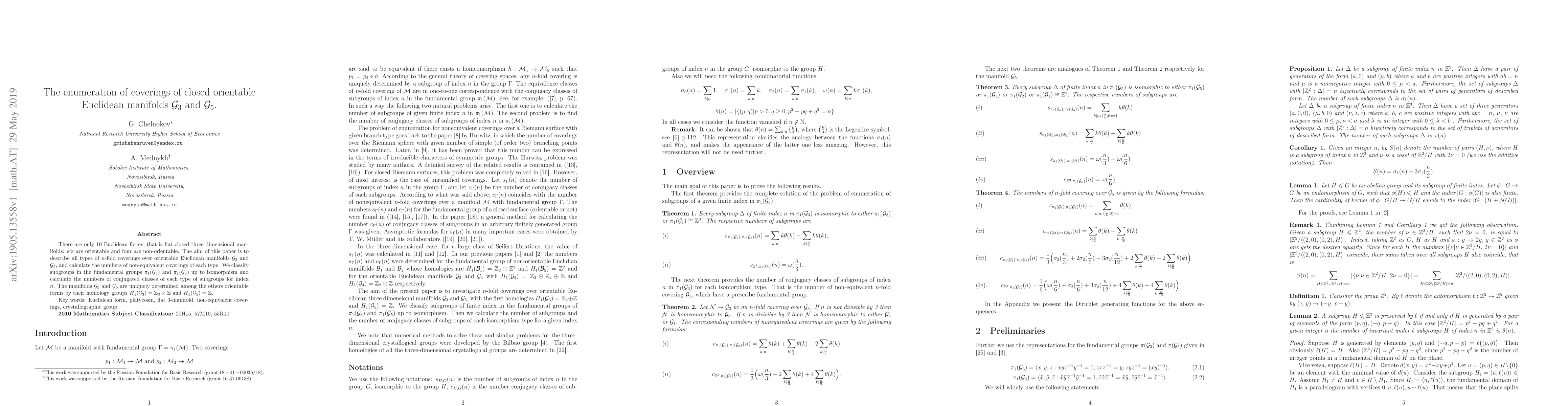 This research is significant as it provides a comprehensive classification and enumeration of coverings for orientable Euclidean manifolds G₃ and G₅, contributing to the understanding of three-dimensional topology and group theory.