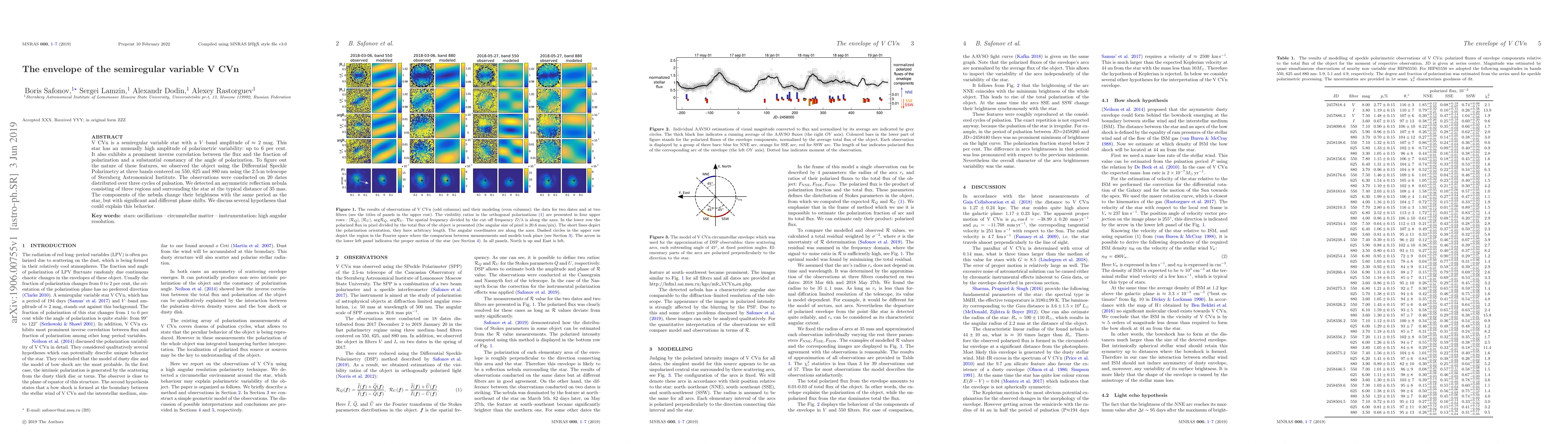 V CVn is a semiregular variable star with a V-band amplitude of $\approx2$ mag. This star has an unusually high amplitude of polarimetric variability: up to 6 per cent. It also exhibits a prominent inverse correlation between the flux and the fraction of polarization and a substantial constancy of the angle of polarization. To figure out the nature of these features, we observed the object using the Differential Speckle Polarimetry at three bands centered on 550, 625 and 880 nm using the 2.5-m telescope of Sternberg Astronomical Institute. The observations were conducted on 20 dates distributed over three cycles of pulsation. We detected an asymmetric reflection nebula consisting of three regions and surrounding the star at the typical distance of 35 mas. The components of the nebula change their brightness with the same period as the star, but with significant and different phase shifts. We discuss several hypotheses that could explain this behavior.