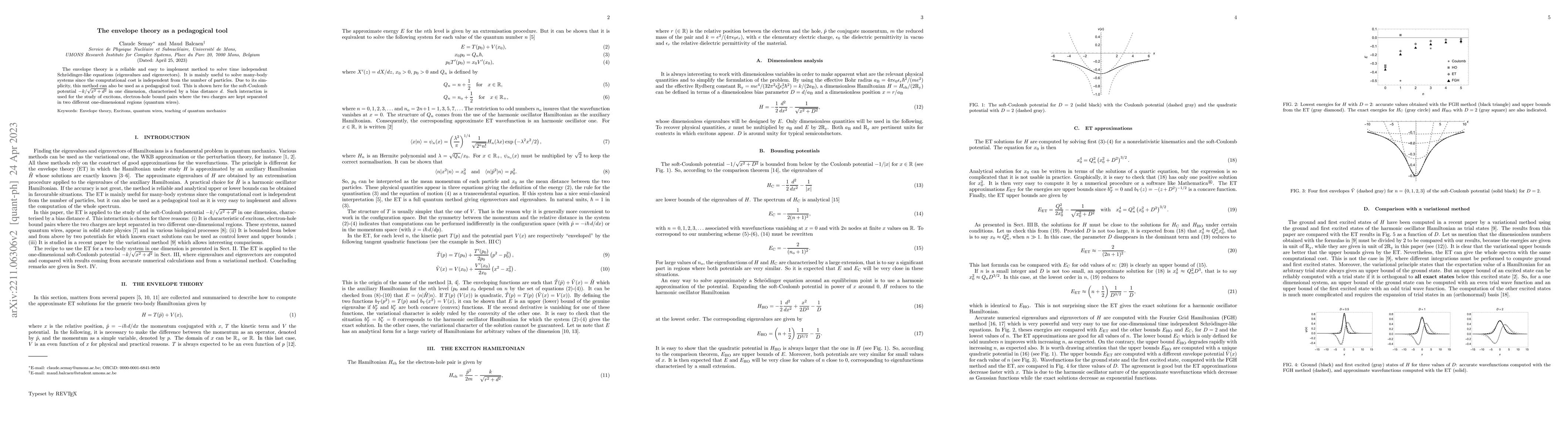 This paper introduces the envelope theory as a pedagogical tool for solving time-independent Schrödinger-like equations, highlighting its simplicity and computational efficiency. It applies the method to the soft-Coulomb potential to study excitons in quantum wires, demonstrating its effectiveness and potential educational value.