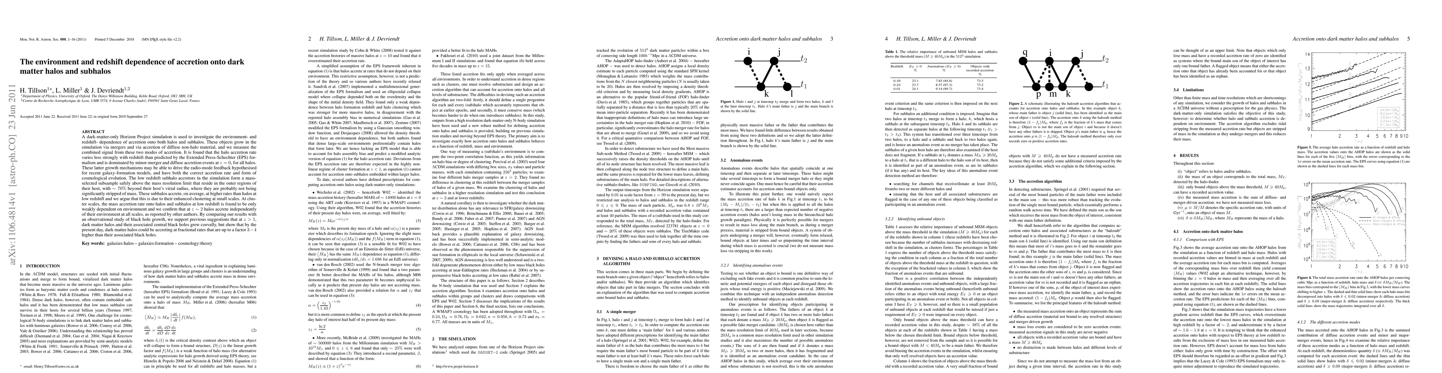 A dark-matter-only Horizon Project simulation is used to investigate the environment- and redshift- dependence of accretion onto both halos and subhalos. These objects grow in the simulation via mergers and via accretion of diffuse non-halo material, and we measure the combined signal from these two modes of accretion. It is found that the halo accretion rate varies less strongly with redshift than predicted by the Extended Press-Schechter (EPS) formalism and is dominated by minor-merger and diffuse accretion events at z=0, for all halos. These latter growth mechanisms may be able to drive the radio-mode feedback hypothesised for recent galaxy-formation models, and have both the correct accretion rate and form of cosmological evolution. The low redshift subhalo accretors in the simulation form a mass-selected subsample safely above the mass resolution limit that reside in the outer regions of their host, with ~70% beyond their host's virial radius, where they are probably not being significantly stripped of mass. These subhalos accrete, on average, at higher rates than halos at low redshift and we argue that this is due to their enhanced clustering at small scales. At cluster scales, the mass accretion rate onto halos and subhalos at low redshift is found to be only weakly dependent on environment and we confirm that at z~2 halos accrete independently of their environment at all scales, as reported by other authors. By comparing our results with an observational study of black hole growth, we support previous suggestions that at z>1, dark matter halos and their associated central black holes grew coevally, but show that by the present day, dark matter halos could be accreting at fractional rates that are up to a factor 3-4 higher than their associated black holes.