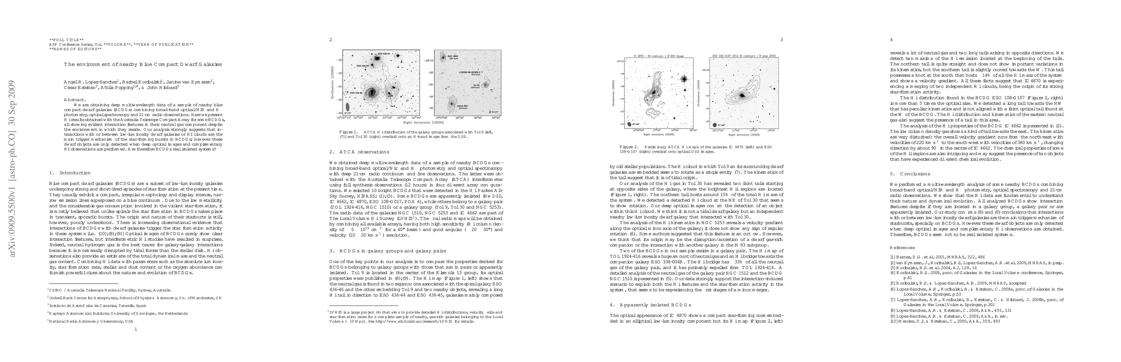 This study combines deep multiwavelength data to analyze nearby blue compact dwarf galaxies (BCDGs), revealing interaction features in their neutral gas despite their environment. The findings suggest that star-forming bursts in BCDGs are primarily triggered by interactions with low-luminosity dwarf galaxies or HI clouds, raising questions about the true isolation of BCDGs.