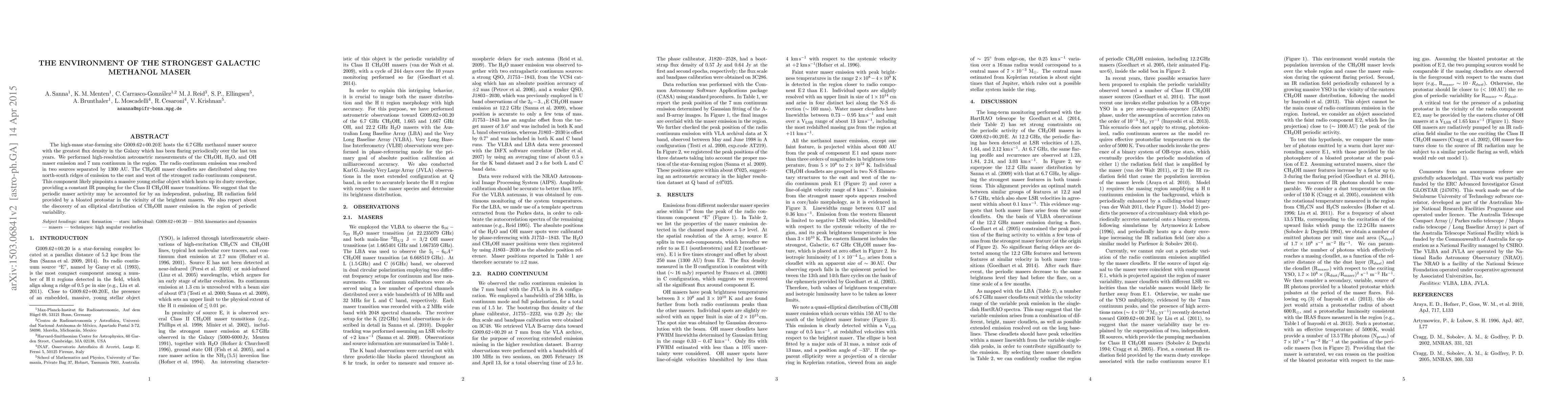 The high-mass star-forming site G009.62+00.20E hosts the 6.7 GHz methanol maser source with the greatest flux density in the Galaxy which has been flaring periodically over the last ten years. We performed high-resolution astrometric measurements of the CH3OH, H2O, and OH maser emission and 7 mm continuum in the region. The radio continuum emission was resolved in two sources separated by 1300 AU. The CH3OH maser cloudlets are distributed along two north-south ridges of emission to the east and west of the strongest radio continuum component. This component likely pinpoints a massive young stellar object which heats up its dusty envelope, providing a constant IR pumping for the Class II CH3OH maser transitions. We suggest that the periodic maser activity may be accounted for by an independent, pulsating, IR radiation field provided by a bloated protostar in the vicinity of the brightest masers. We also report about the discovery of an elliptical distribution of CH3OH maser emission in the region of periodic variability.