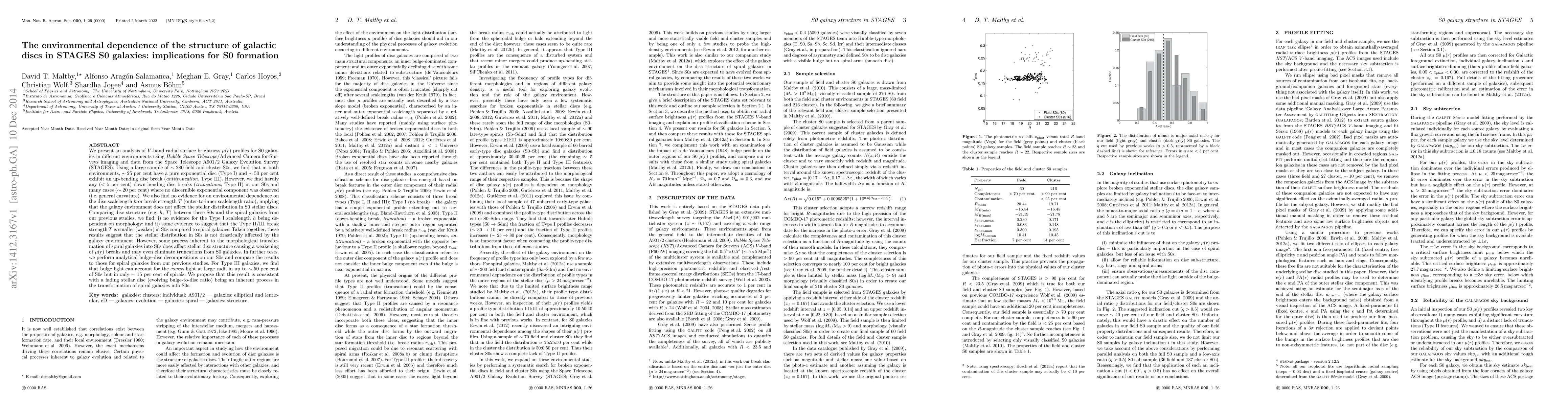 We present an analysis of V-band radial surface brightness {\mu}(r) profiles for S0s in different environments using HST/ACS imaging and data from the Space Telescope A901/2 Galaxy Evolution Survey (STAGES). Using a sample of ~280 field and cluster S0s, we find that in both environments, ~25 per cent have a pure exponential disc (Type I) and ~50 per cent exhibit an up-bending disc break (antitruncation, Type III). However, we find hardly any (< 5 per cent) down-bending disc breaks (truncations, Type II) in our S0s and many cases (~20 per cent) where no exponential component was observed. We also find no evidence for an environmental dependence on the disc scalelength or break strength (outer-to-inner scalelength ratio), implying that the galaxy environment does not affect the stellar distribution in S0 stellar discs. Comparing disc structure between these S0s and the spirals from our previous studies, we find: i) no evidence for the Type I scalelength being dependent on morphology; and ii) some evidence suggesting the Type II/III break strength is smaller (weaker) in S0s compared to spirals. Taken together, these results suggest that the stellar distribution in S0s is not drastically affected by the galaxy environment. However, some process inherent to the morphological transformation of spirals into S0s does affect the stellar disc causing a weakening of {\mu}(r) breaks and may even eliminate truncations from S0s. In further tests, we perform analytical bulge-disc decompositions on our S0s and compare the results to those for spirals from our previous studies. For Type III galaxies, we find that bulge light can account for the excess light at large radii in up to ~50 per cent of S0s but in only ~15 per cent of spirals. We propose that this result is consistent with a fading stellar disc (evolving bulge-to-disc ratio) being an inherent process in the transformation of spirals into S0s.
