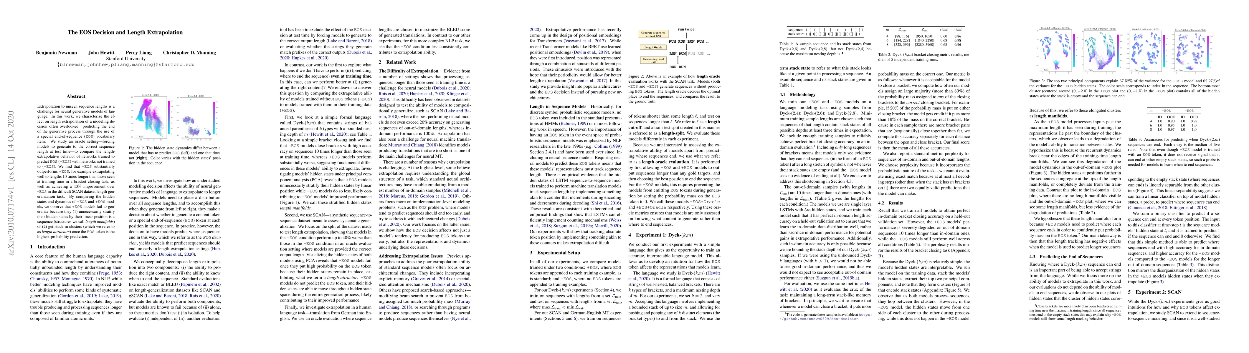 A new study finds that neural language models trained to predict the end of a sequence (EOS) perform worse than those not trained for EOS on tasks requiring extrapolation to longer lengths. This is due to stratification of hidden states by linear position and getting stuck in clusters, hindering generalization.