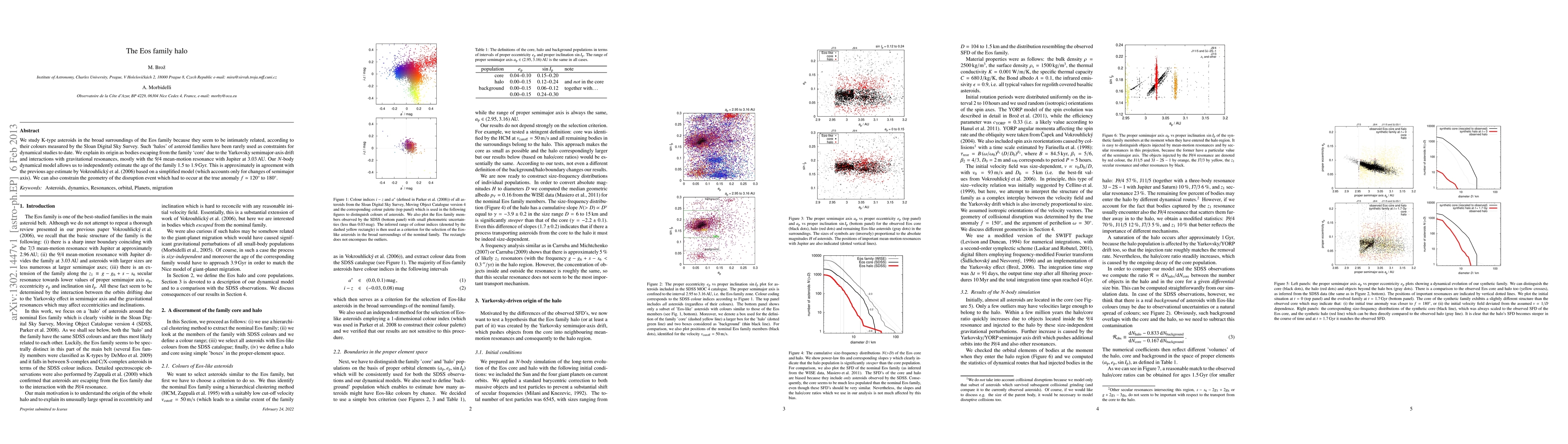 Researchers study the Eos family of asteroids to understand their origin and age, using a combination of observations and dynamical modeling to estimate an age of 1.5 to 1.9 billion years.