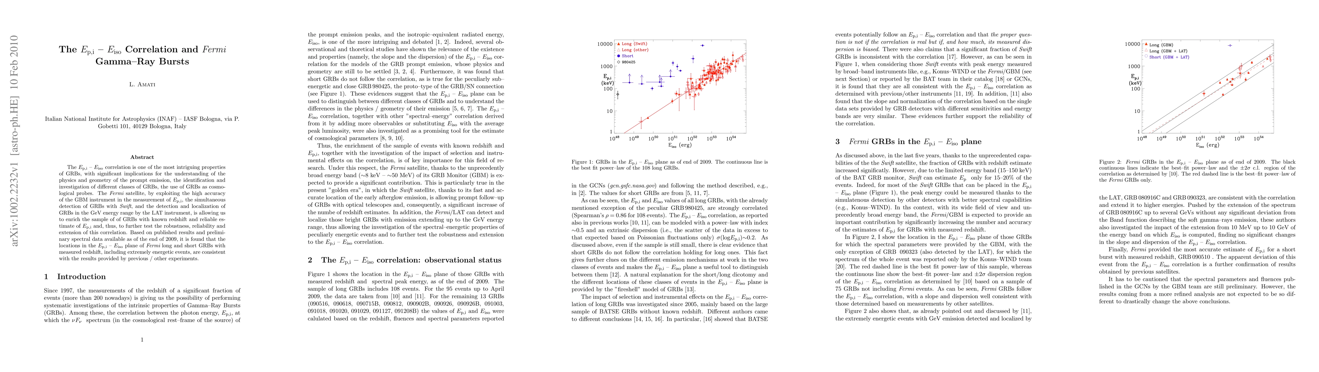 This work builds upon previous studies by leveraging Fermi's capabilities to test the Ep,i - Eiso correlation with a more extensive and reliable dataset, including long and short GRBs, and extending the correlation to higher energies.