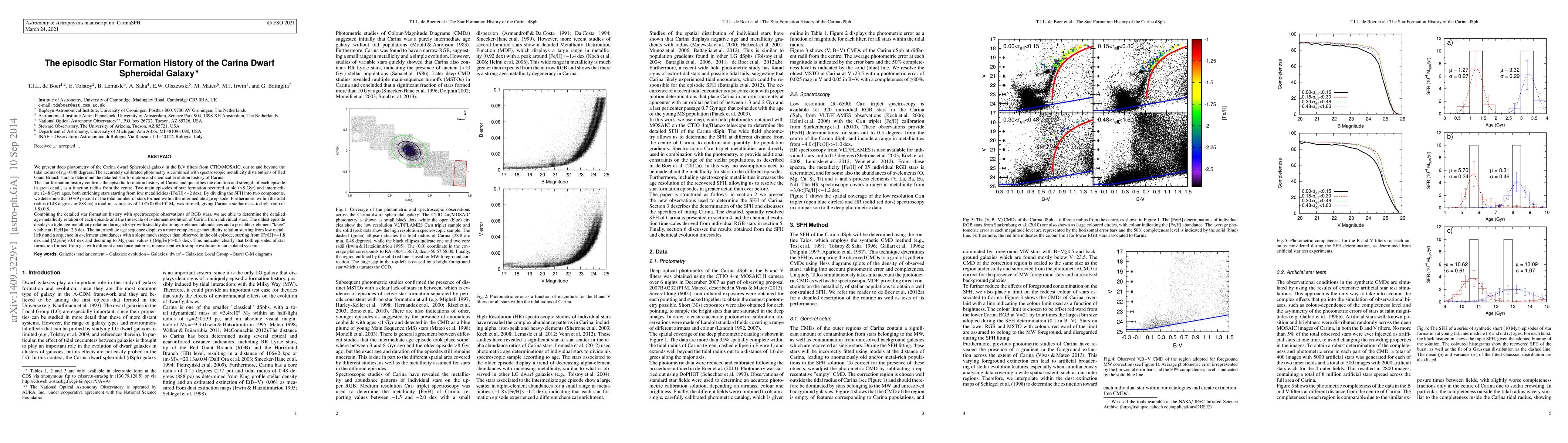 This paper presents a detailed star formation history of the Carina dwarf Spheroidal galaxy using deep photometry and spectroscopic metallicity distributions. It reveals two main episodes of star formation, one old (>8 Gyr) and one intermediate (2-8 Gyr), with 60% of the stars formed during the intermediate episode. The study also highlights distinct age-metallicity relations and alpha-element evolution patterns for each episode, indicating complex formation processes.
