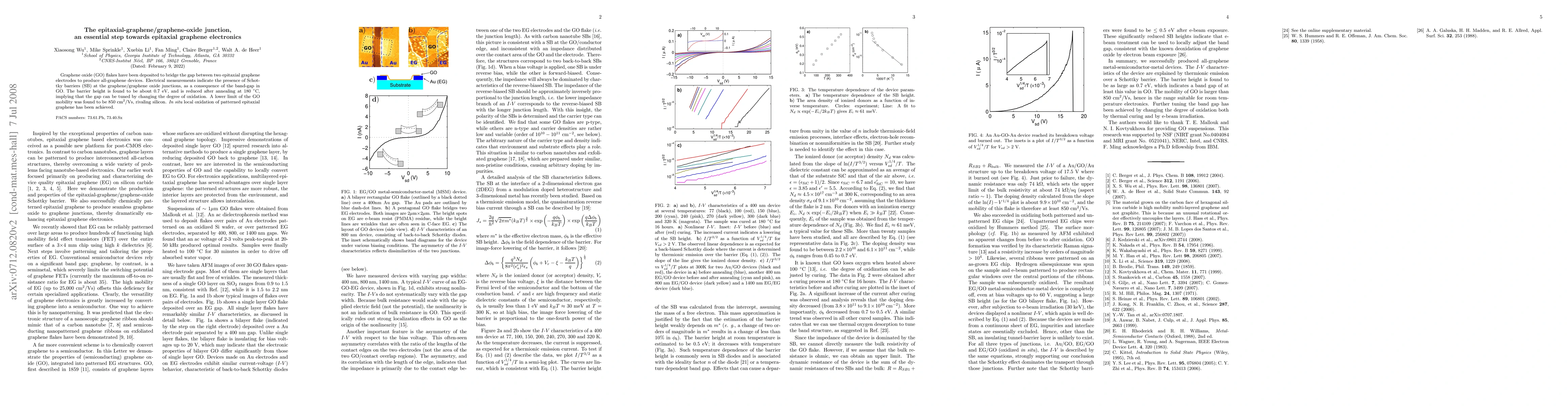 This paper investigates the epitaxial-graphene/graphene oxide junction, revealing Schottky barriers due to the band-gap in graphene oxide, with a barrier height of 0.7 eV that can be tuned by annealing, and demonstrates the potential for all-graphene electronic devices with graphene oxide mobility comparable to silicon.