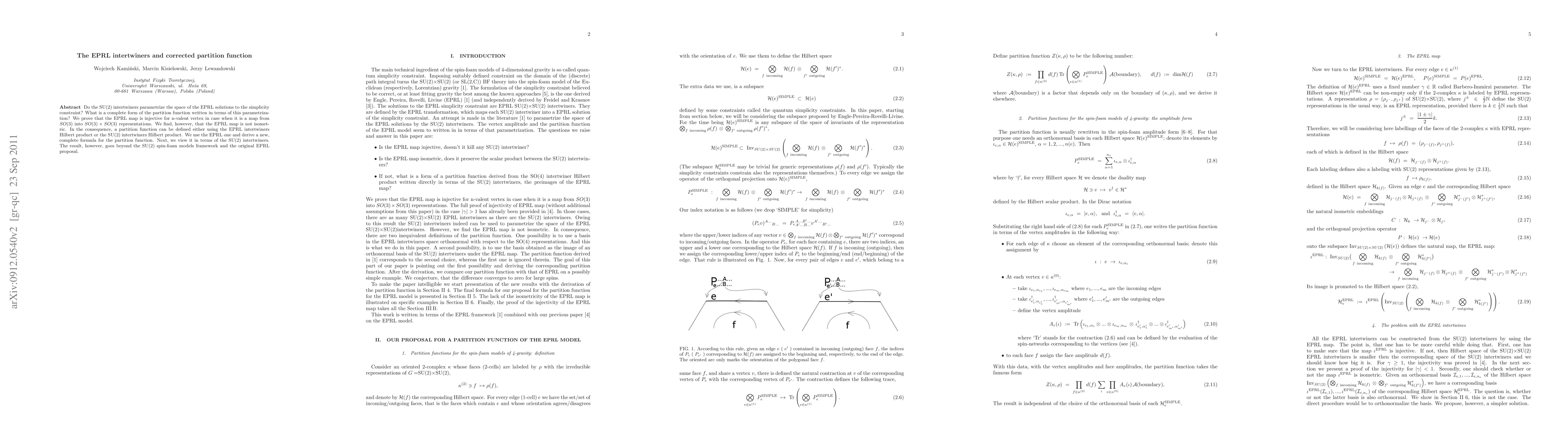 This paper investigates the role of SU(2) intertwiners in parametrizing EPRL solutions to the simplicity constraint and derives a corrected partition function formula. It proves the injectivity of the EPRL map for n-valent vertices but finds it non-isometric, leading to a rederived complete partition function formula extending beyond SU(2) spin-foam models.