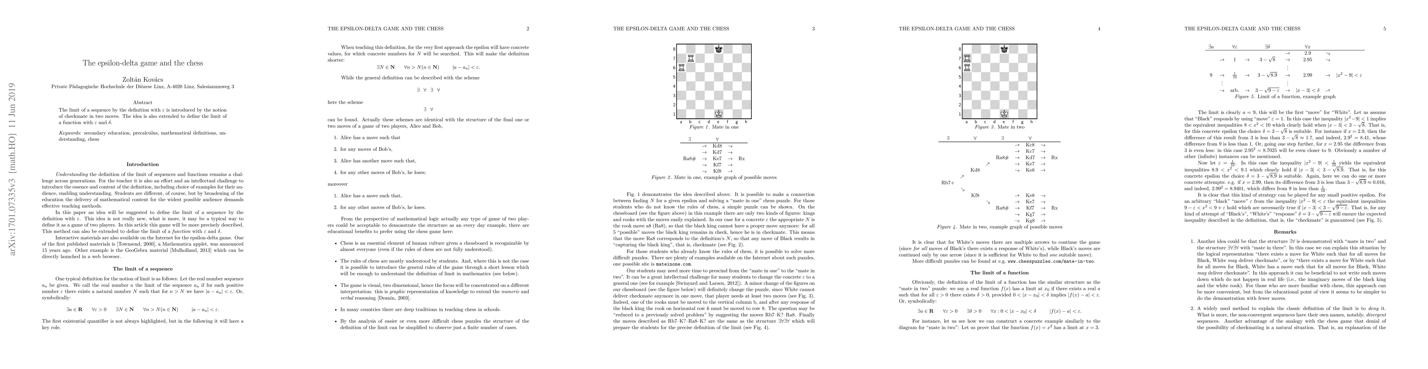 A research paper introduces a new method to define limits of sequences using checkmate in chess, expanding it to functions with epsilon and delta, providing a novel approach to understanding mathematical convergence.