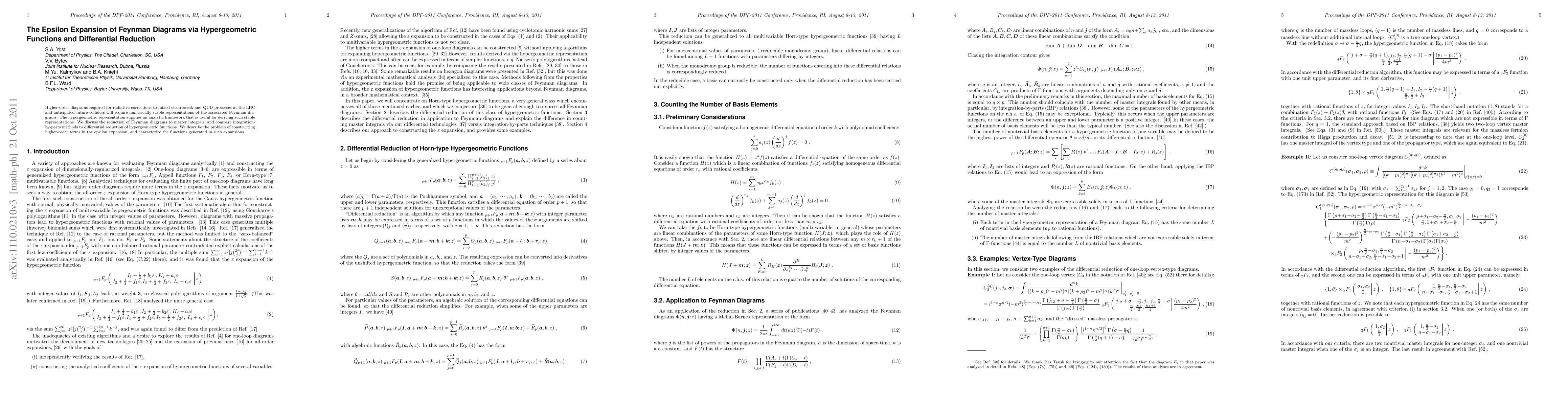 Higher-order diagrams required for radiative corrections to mixed electroweak and QCD processes at the LHC and anticipated future colliders will require numerically stable representations of the associated Feynman diagrams. The hypergeometric representation supplies an analytic framework that is useful for deriving such stable representations. We discuss the reduction of Feynman diagrams to master integrals, and compare integration-by-parts methods to differential reduction of hypergeometric functions. We describe the problem of constructing higher-order terms in the epsilon expansion, and characterize the functions generated in such expansions.
