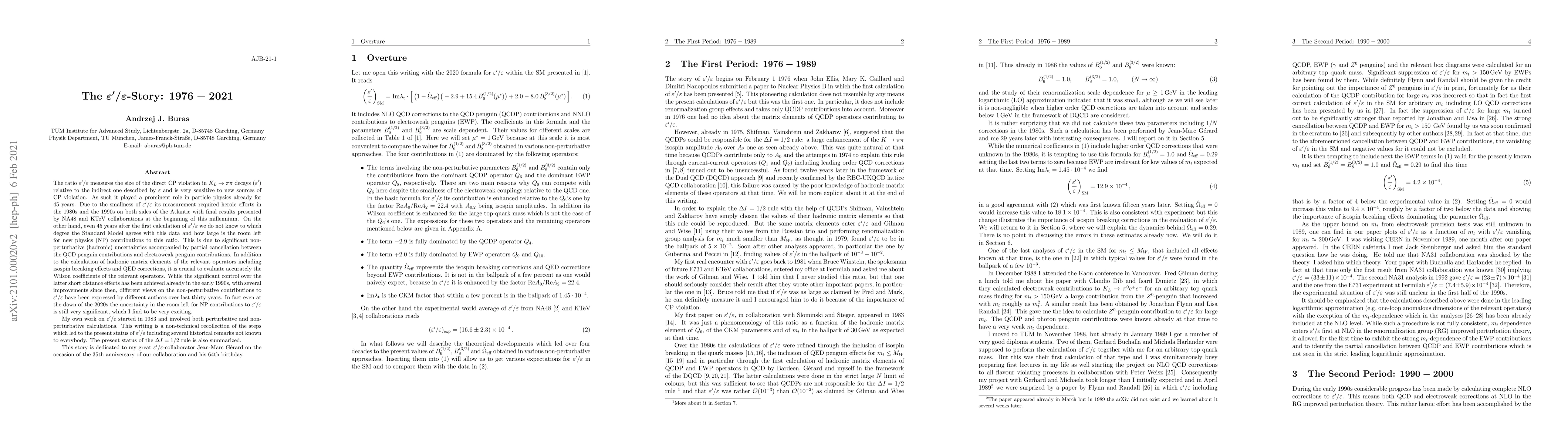 The ratio $\epsilon'/\epsilon$ measures the size of the direct CP violation in $K_L\to\pi\pi$ decays $(\epsilon^\prime)$ relative to the indirect one described by $\epsilon$ and is very sensitive to new sources of CP violation. As such it played a prominent role in particle physics already for 45 years. Due to the smallness of $\epsilon'/\epsilon$ its measurement required heroic efforts in the 1980s and the 1990s on both sides of the Atlantic with final results presented by NA48 and KTeV collaborations 20 years ago. Unfortunately, even 45 years after the first calculation of $\epsilon'/\epsilon$ we do not know to which degree the Standard Model agrees with this data and how large is the room left for new physics contributions to this ratio. This is due to significant non-perturbative (hadronic) uncertainties accompanied by partial cancellation between the QCD penguin contributions and electroweak penguin contributions. While the significant control over the short distance perturbative effects has been achieved already in the early 1990s, with several improvements since then, different views on the non-perturbative contributions to $\epsilon'/\epsilon$ have been expressed by different authors over last thirty years. In fact even today the uncertainty in the room left for NP contributions to $\epsilon'/\epsilon$ is very significant. My own work on $\epsilon'/\epsilon$ started in 1983 and involved both perturbative and non-perturbative calculations. This writing is a non-technical recollection of the steps which led to the present status of $\epsilon'/\epsilon$ including several historical remarks not known to everybody. The present status of the $\Delta I=1/2$ rule is also summarized. This story is dedicated to Jean-Marc Gerard on the occasion of the 35th anniversary of our collaboration and his 64th birthday.