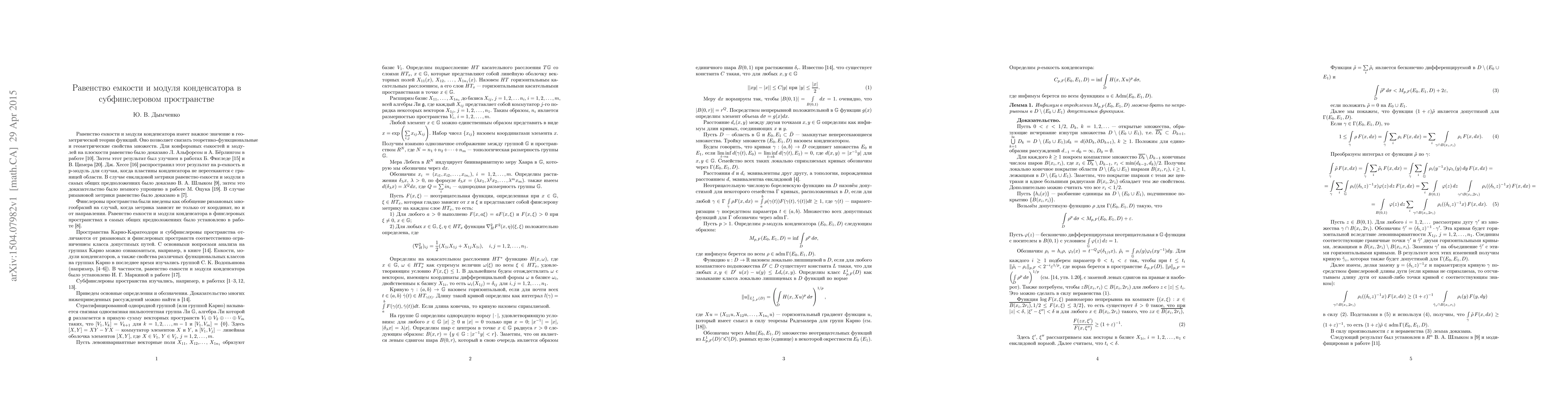 Summary: This paper demonstrates the equivalence between condenser capacity and the modulus of curve families connecting condenser plates within Sub-Finsler spaces, establishing a fundamental relationship in geometric analysis.