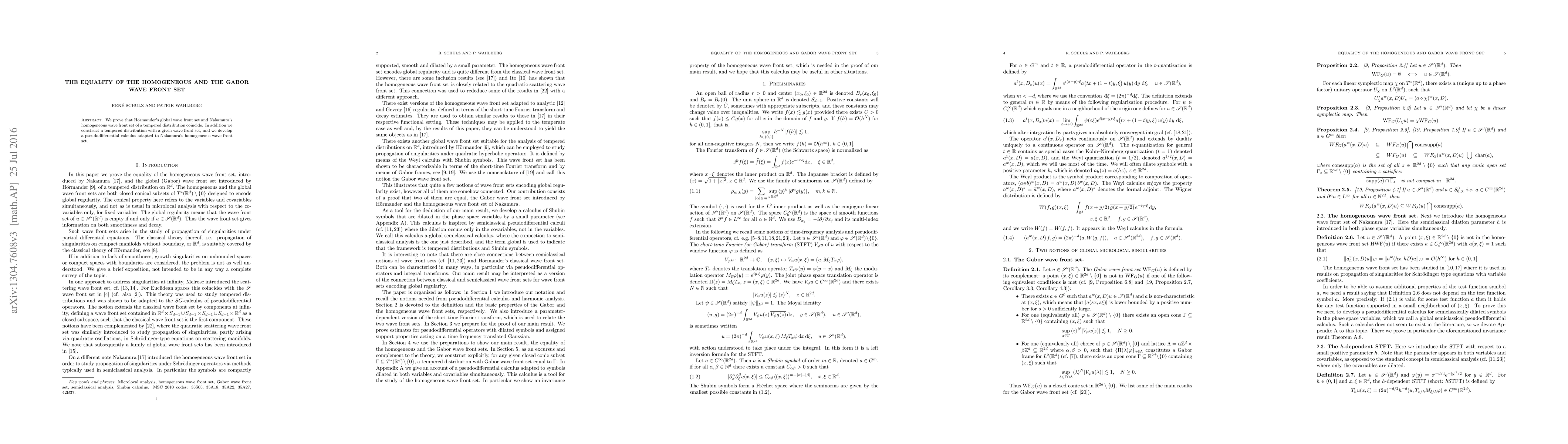 This paper proves the equivalence between Hörmander's global wave front set and Nakamura's homogeneous wave front set for tempered distributions. It also constructs a tempered distribution with a specified wave front set and develops a pseudodifferential calculus tailored to Nakamura's homogeneous wave front set.