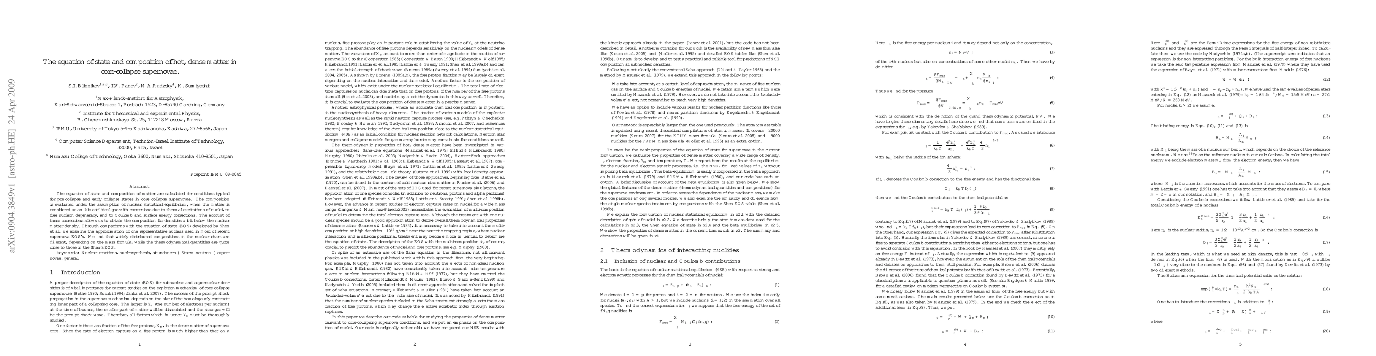 This paper calculates the equation of state and composition of hot, dense matter in core-collapse supernovae under nuclear statistical equilibrium, finding significant differences in composition depending on the mass formula used, despite thermodynamical similarities to existing models.