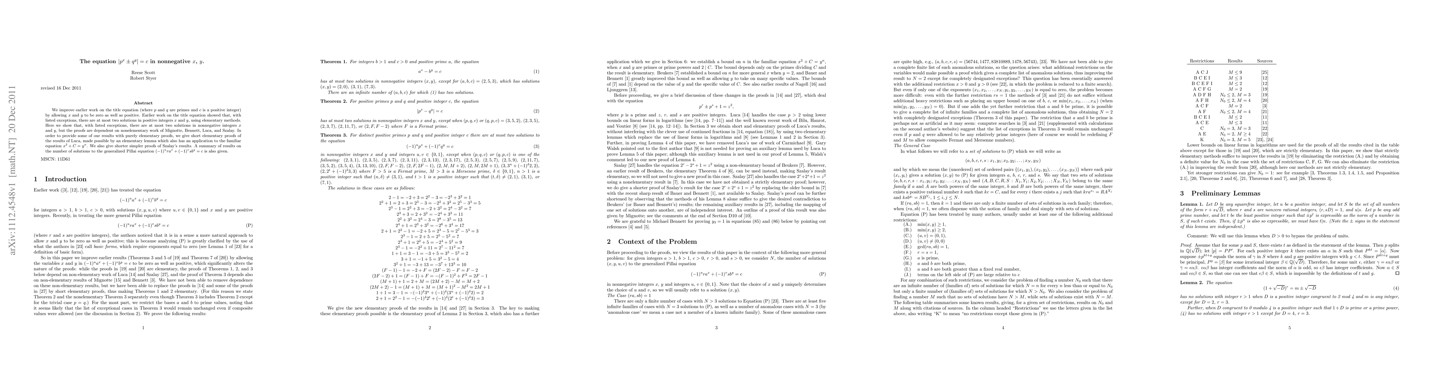 This paper refines previous findings on the equation $|p^x \pm q^y| = c$ by allowing $x$ and $y$ to be nonnegative integers, showing at most two solutions exist with exceptions. It utilizes nonelementary methods and provides elementary proofs for some results, also summarizing findings on the generalized Pillai equation.