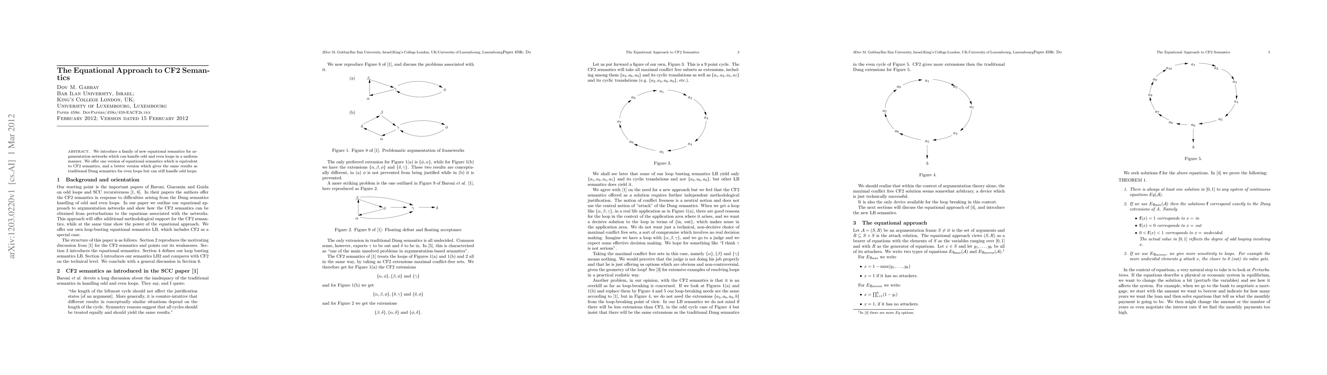 We introduce a family of new equational semantics for argumentation networks which can handle odd and even loops in a uniform manner. We offer one version of equational semantics which is equivalent to CF2 semantics, and a better version which gives the same results as traditional Dung semantics for even loops but can still handle odd loops.