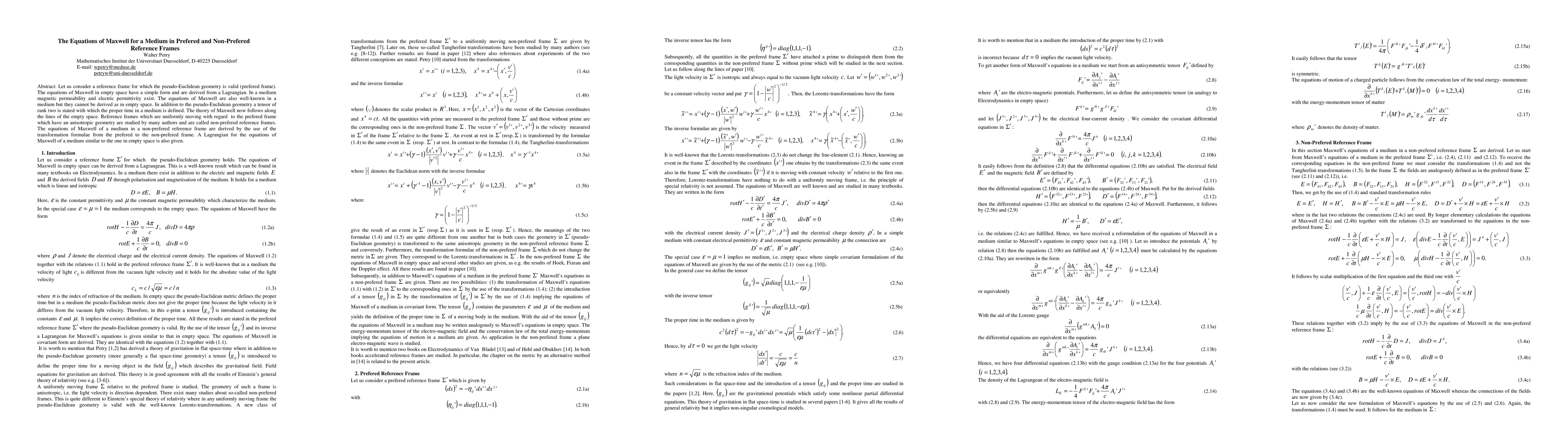 This paper explores Maxwell's equations in both preferred and non-preferred reference frames, deriving them from a Lagrangian in preferred frames and transforming them for non-preferred frames, while considering the medium's magnetic permeability and electric permittivity. A tensor defining proper time in a medium is introduced to extend the theory.
