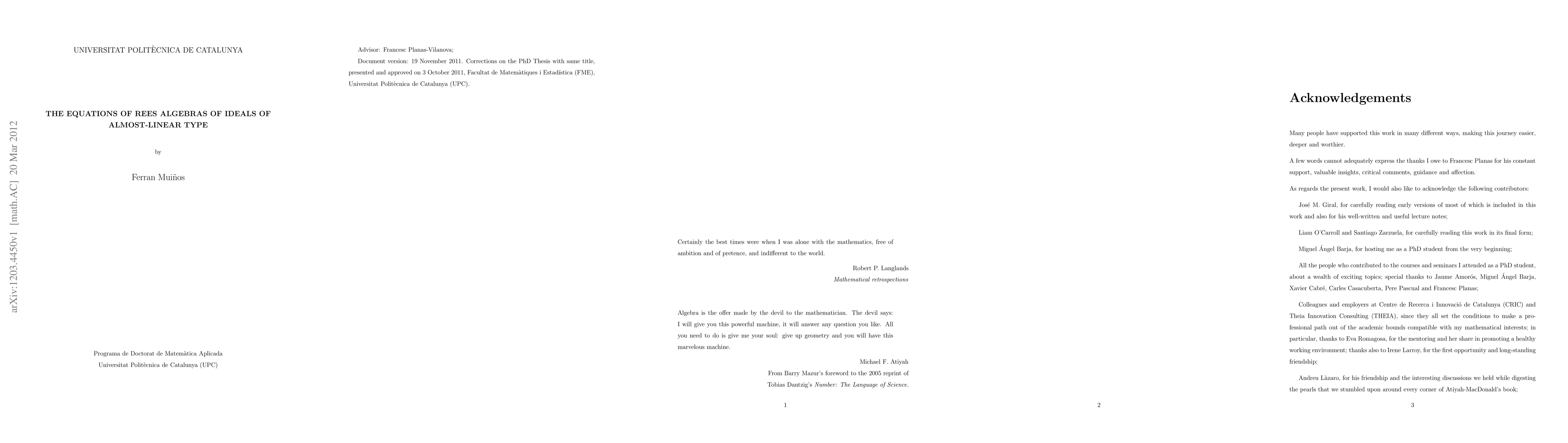 This research paper describes the equations of Rees algebras for ideals of almost-linear type, resolving long-standing problems in algebraic geometry and providing new insights into the properties of such ideals.