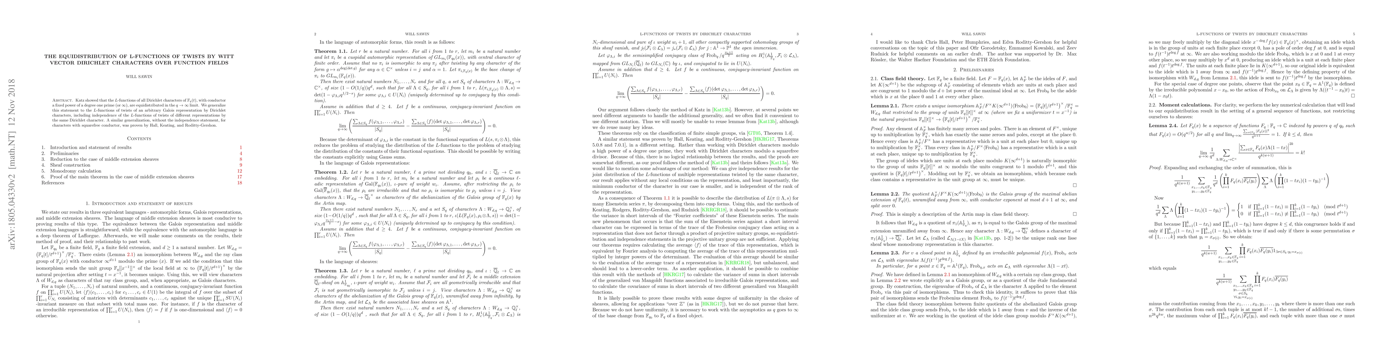This paper generalizes Katz's result on the equidistribution of L-functions of Dirichlet characters over function fields to include twists by Witt vector Dirichlet characters, establishing independence among L-functions of different twists. This extends previous work by Hall, Keating, and Roditty-Gershon for squarefree conductors.