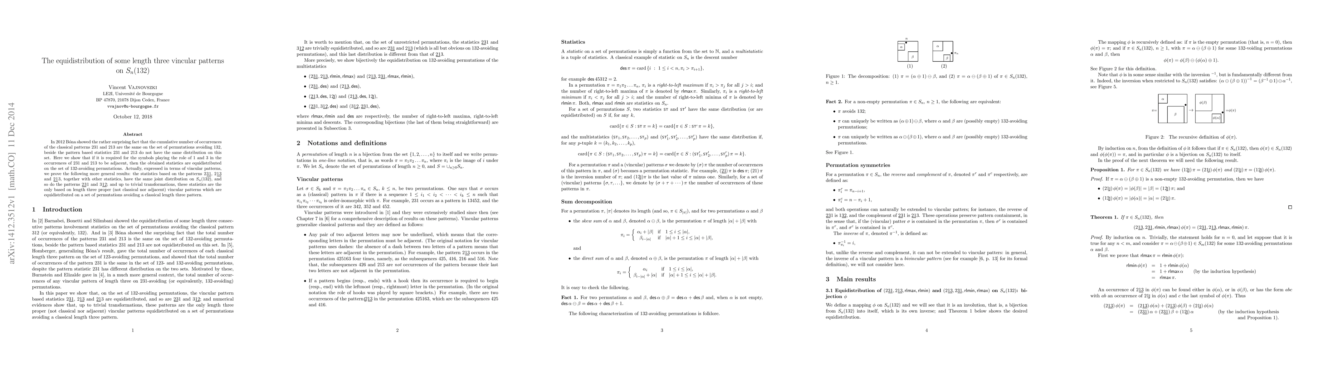 In 2012 B\'ona showed the rather surprising fact that the cumulative number of occurrences of the classical patterns $231$ and $213$ are the same on the set of permutations avoiding $132$, beside the pattern based statistics $231$ and $213$ do not have the same distribution on this set. Here we show that if it is required for the symbols playing the role of $1$ and $3$ in the occurrences of $231$ and $213$ to be adjacent, then the obtained statistics are equidistributed on the set of $132$-avoiding permutations. Actually, expressed in terms of vincular patterns, we prove the following more general results: the statistics based on the patterns $b-ca$, $b-ac$ and $ba-c$, together with other statistics, have the same joint distribution on $S_n(132)$, and so do the patterns $bc-a$ and $c-ab$; and up to trivial transformations, these statistics are the only based on length three proper (not classical nor adjacent) vincular patterns which are equidistributed on a set of permutations avoiding a classical length three pattern.